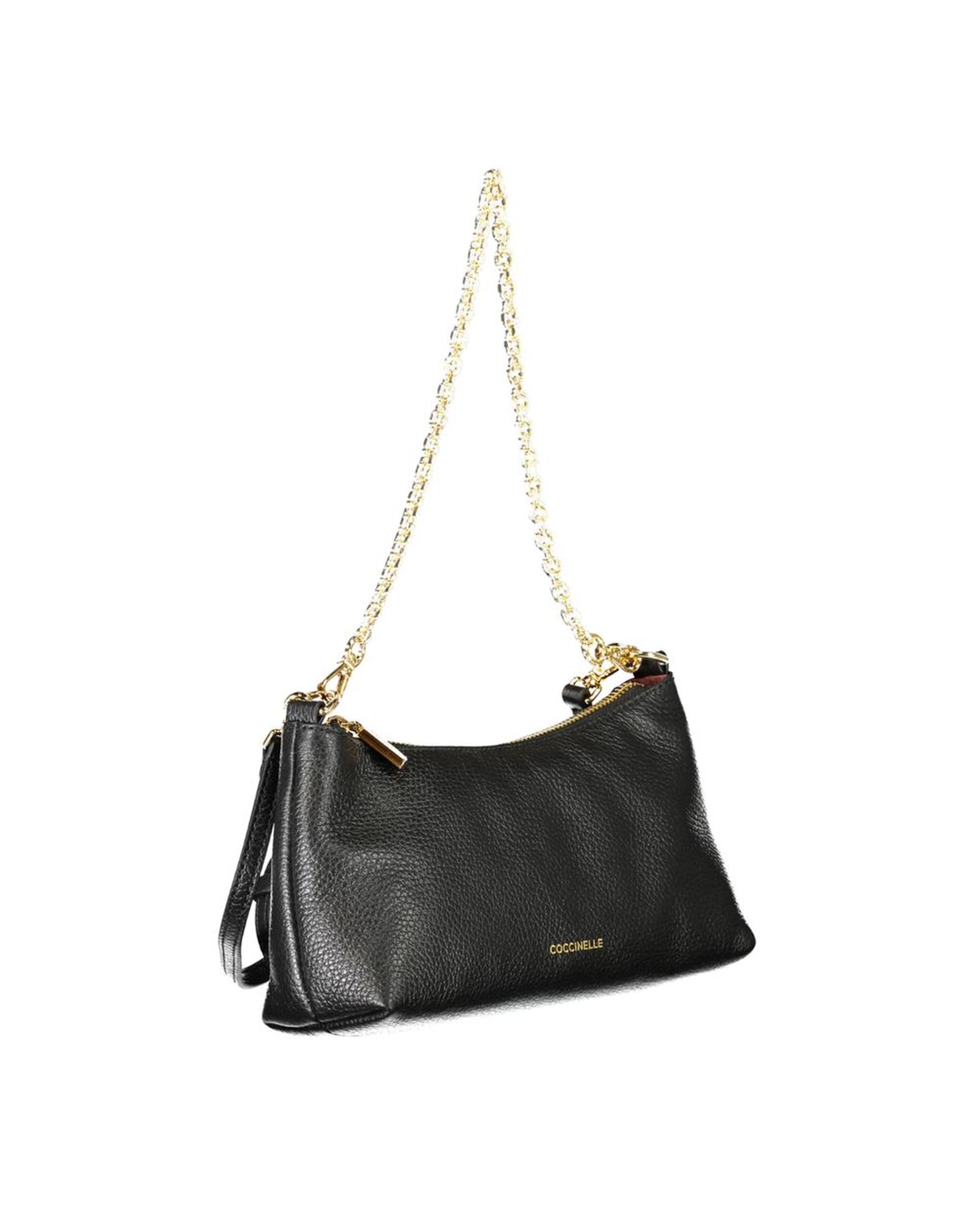 This elegant women’s handbag is crafted from high-quality black leather, offering a versatile and stylish accessory for various occasions. It features a removable chain shoulder handle and an adjustable, removable shoulder strap for customizable carrying options. The bag provides organized internal spaces separated by card compartments and is secured with a zip closure for added security.