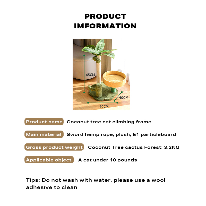 Material: Particleboard, Natural Sisal Rope, Soft Plush
