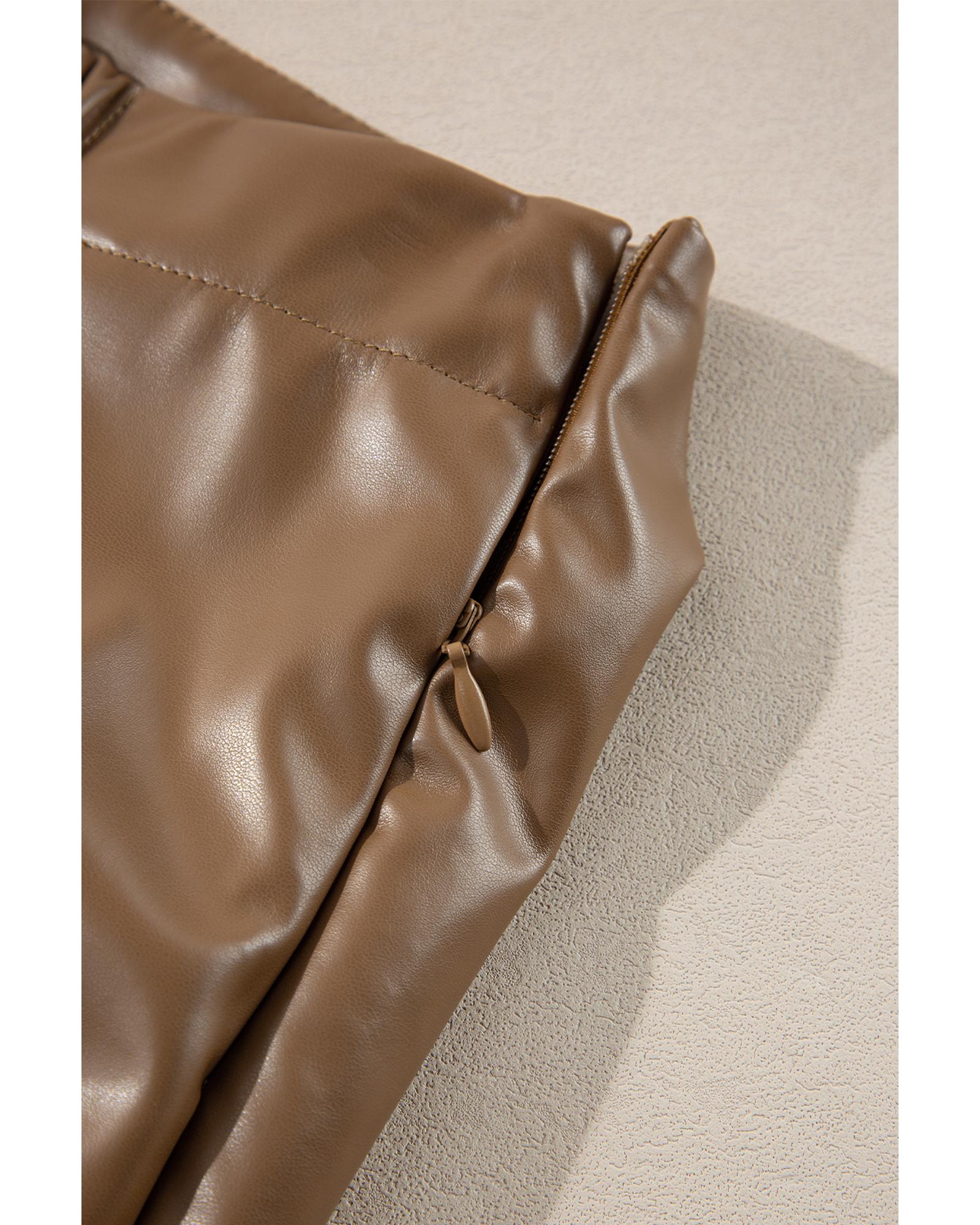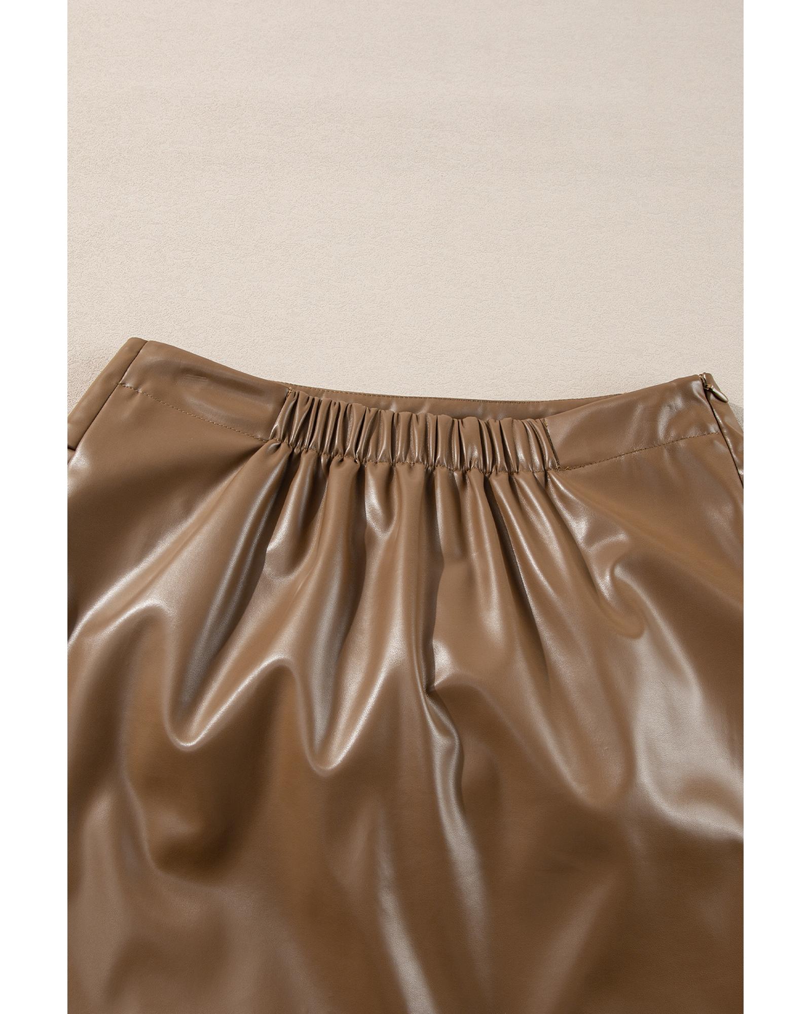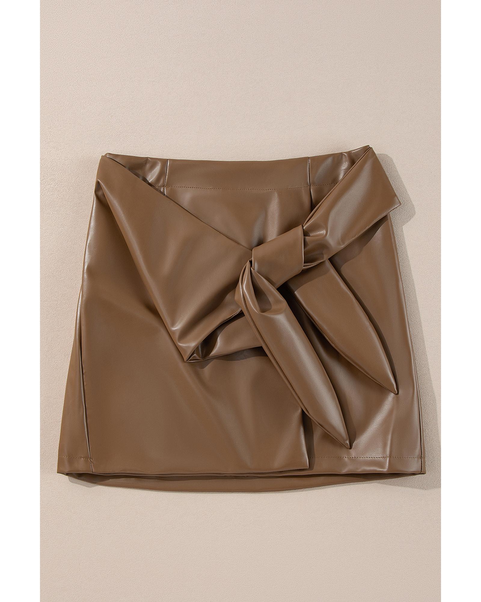 Coffee Bowknot Faux Leather Mini Skirt – XL
