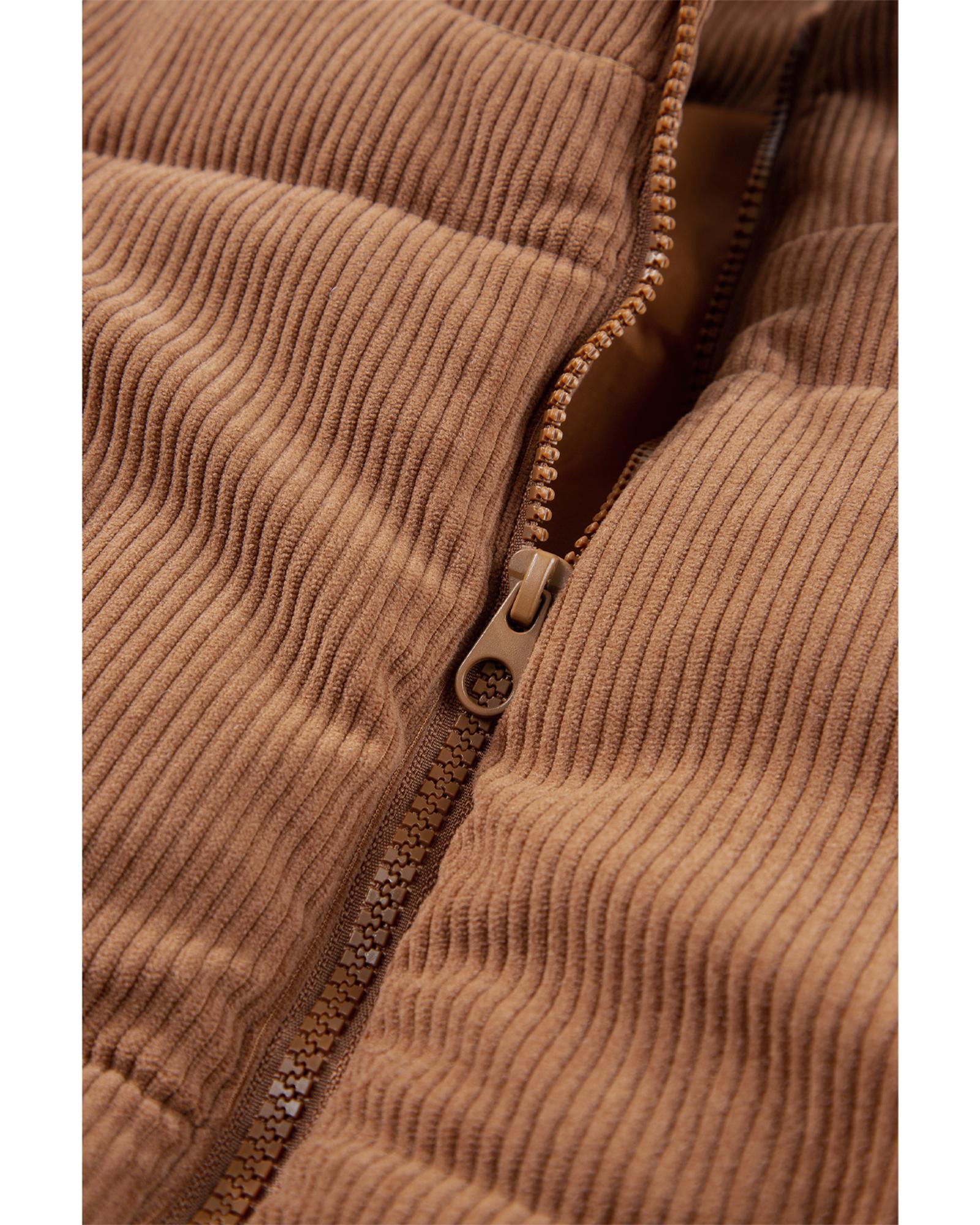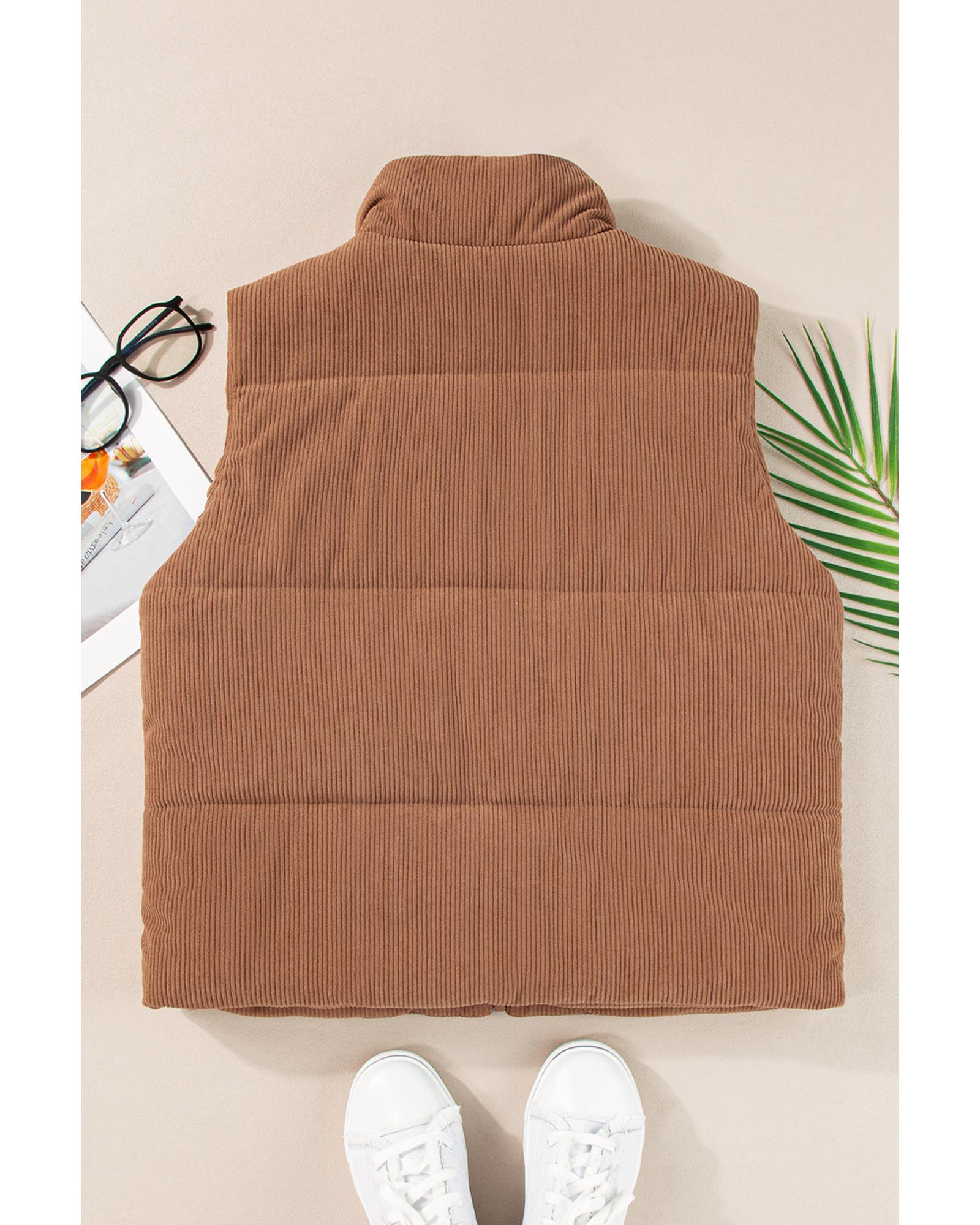Coffee Corduroy Stand Neck Zipped Puffer Vest – L