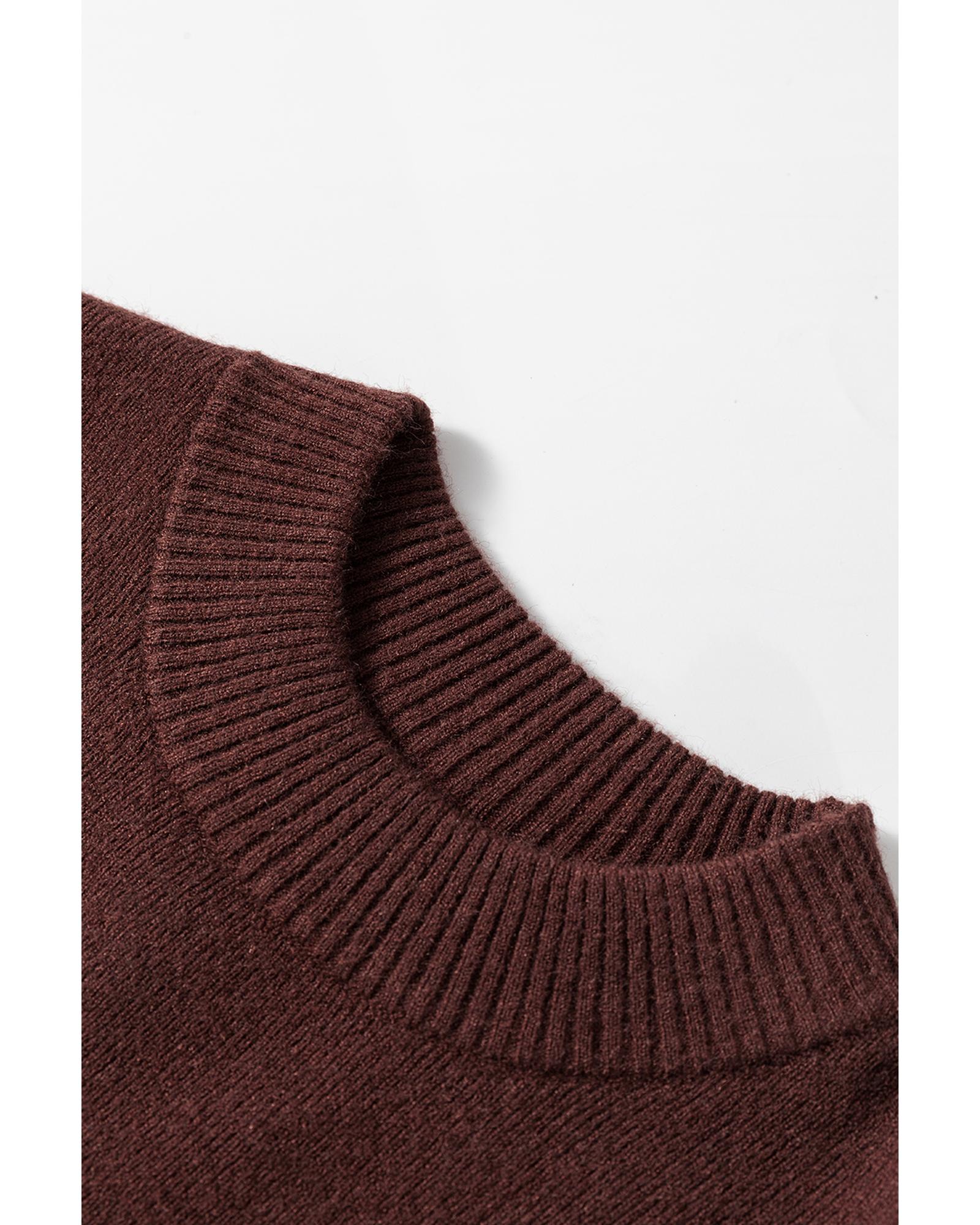 Coffee Slim Fit Mock Neck Side Slit Sweater Dress – XL
