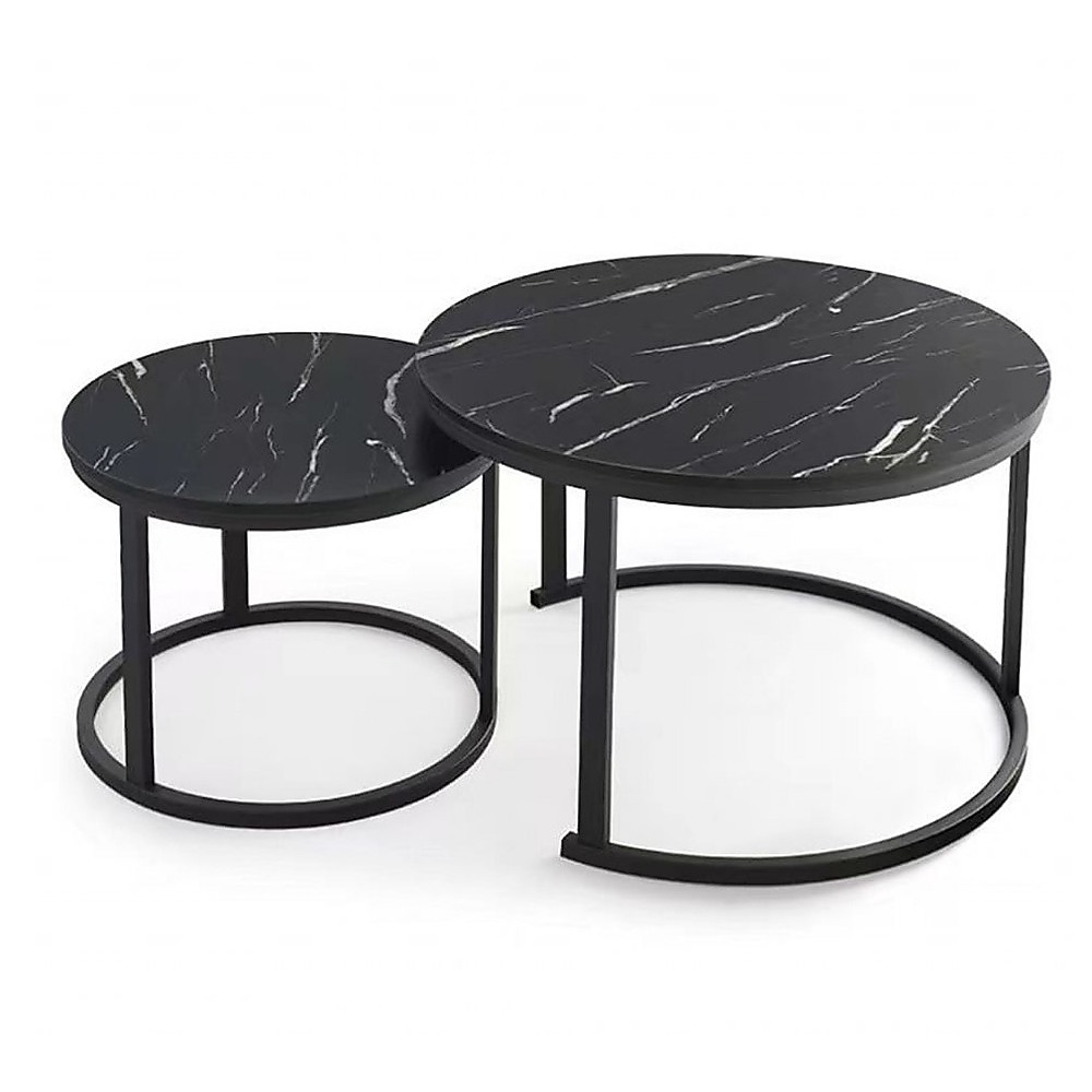 This round marble design nesting coffee table set offers a versatile and stylish addition to any living space. With two tables that can be used together or separately, it provides flexible surface area for entertaining or everyday use.