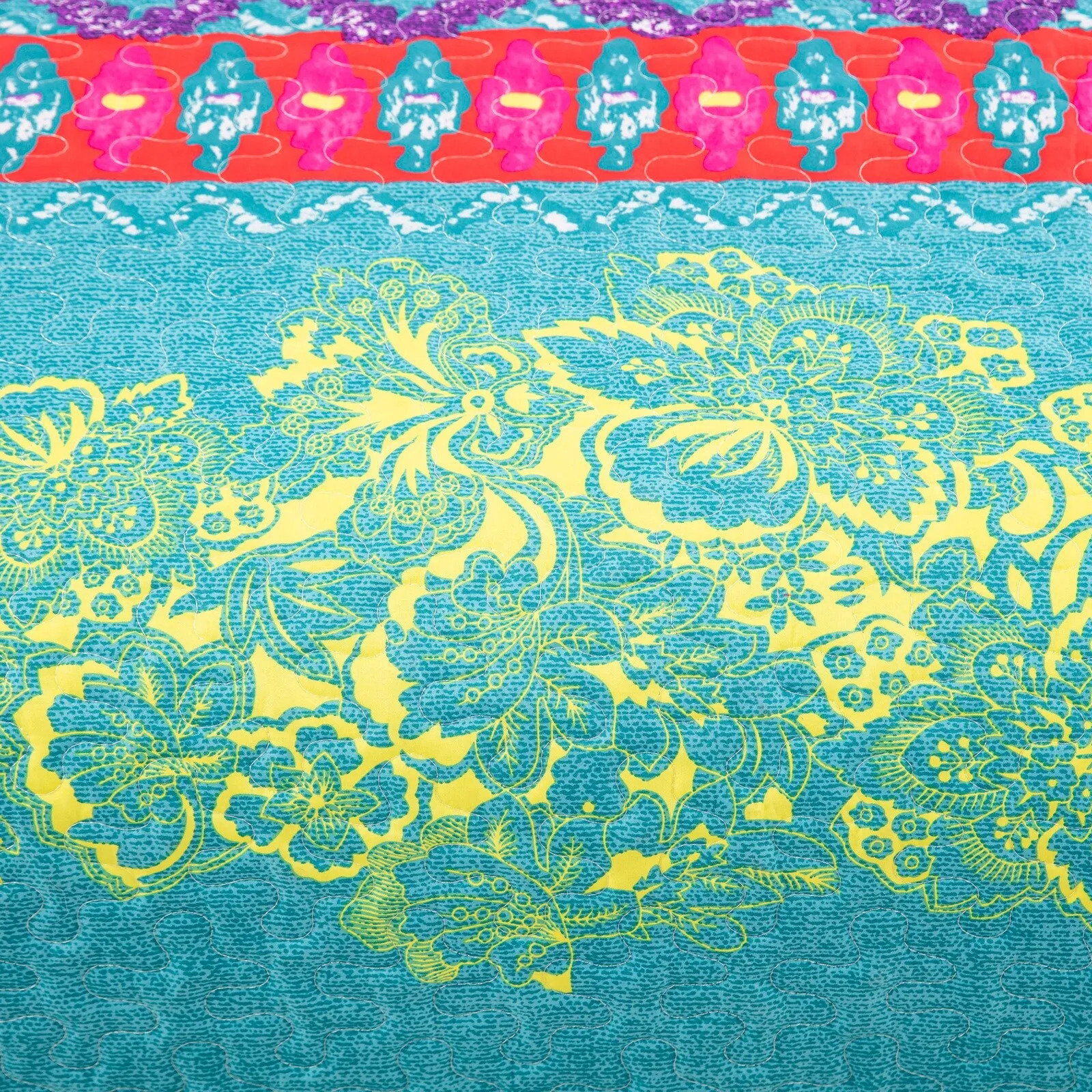 This colorful quilted bedspread and pillowcover set adds a vibrant touch to your bedroom decor. Designed to enhance comfort and style, it transforms your sleeping space into a cozy and inviting retreat with its elegant and functional design.