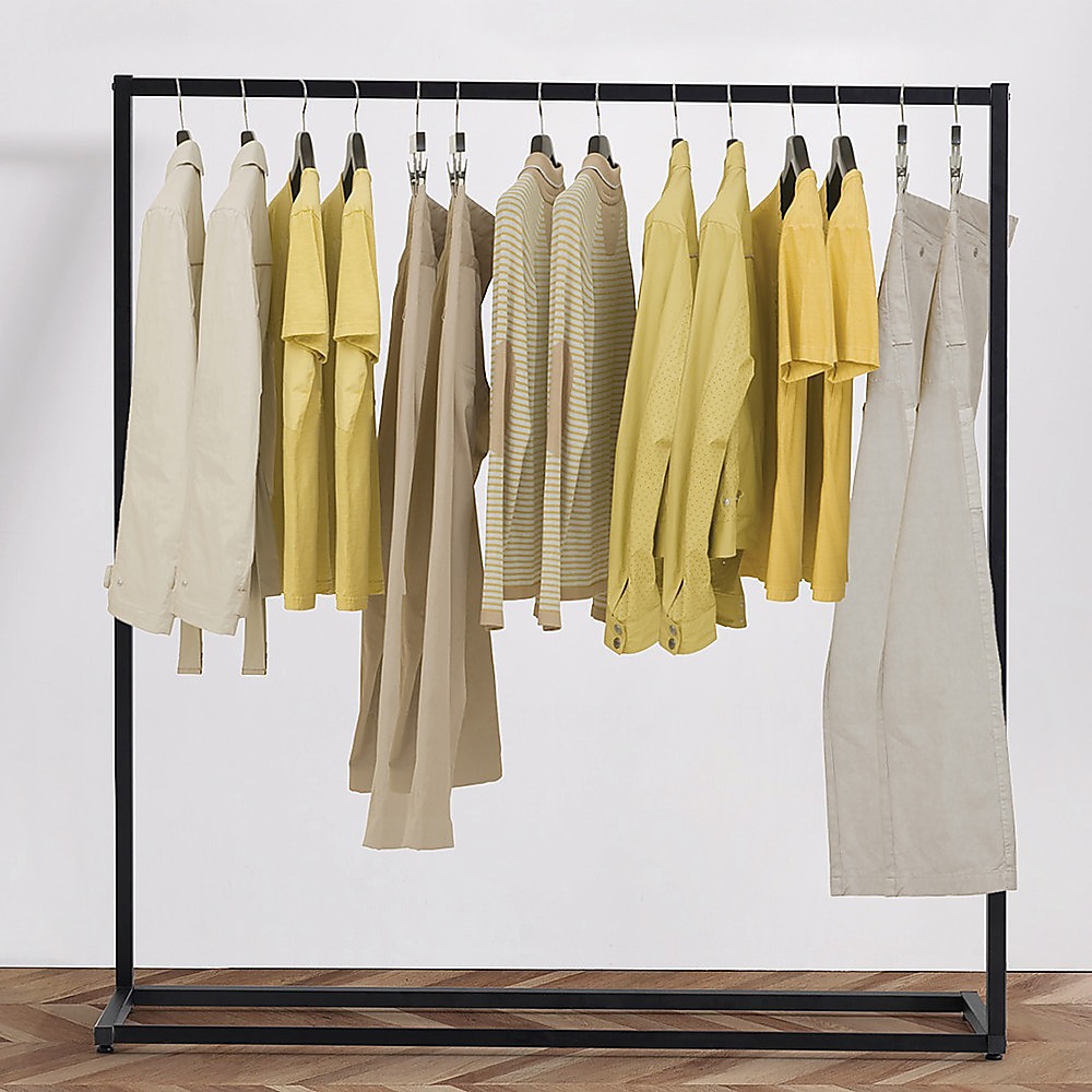 This clothing rack is designed for retail shops, walk-in wardrobes, and various organizational needs. Made from industrial-grade steel, it offers durability and stability, making it suitable for displaying or storing clothing and accessories. Its sturdy construction and simple assembly make it a practical addition to any space.