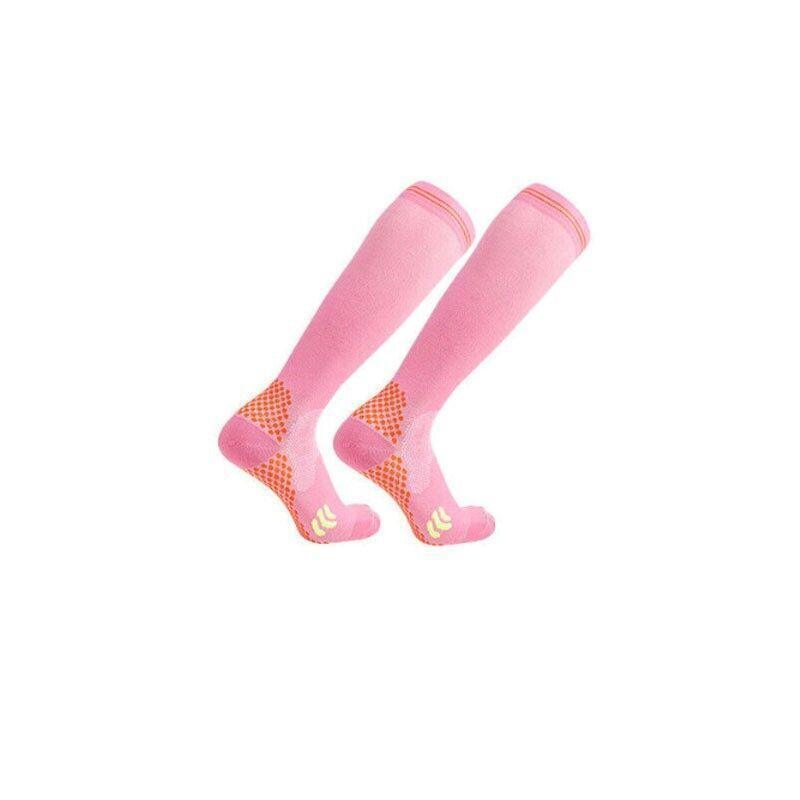 This pair of compression socks is designed to provide comfort and support during travel or daily activities. Made from copper-infused fabric, these knee-high socks help improve circulation, reduce pain and swelling, and offer anti-fatigue support. They also feature antimicrobial properties to prevent odors and promote freshness.
