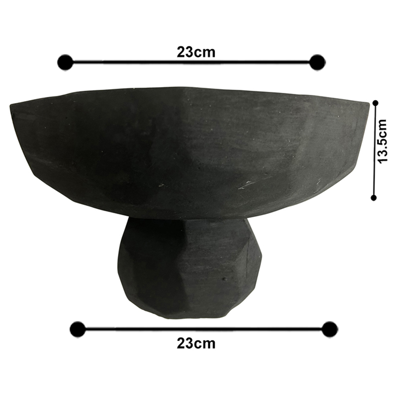 This contemporary black decorative footed bowl is designed to enhance the presentation of your favorite foods. Its stylish appearance makes it a versatile addition to any kitchen or dining space.