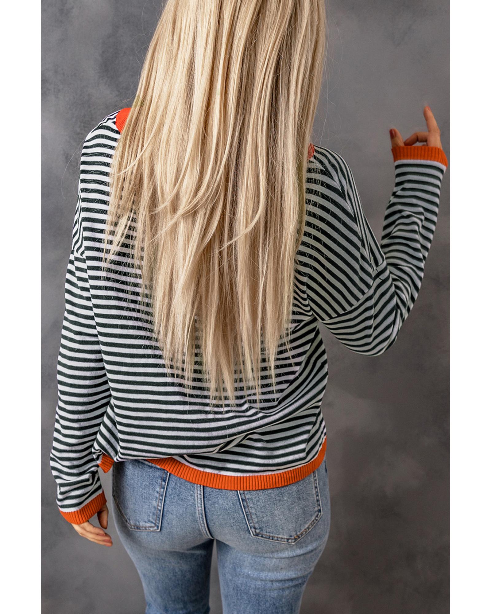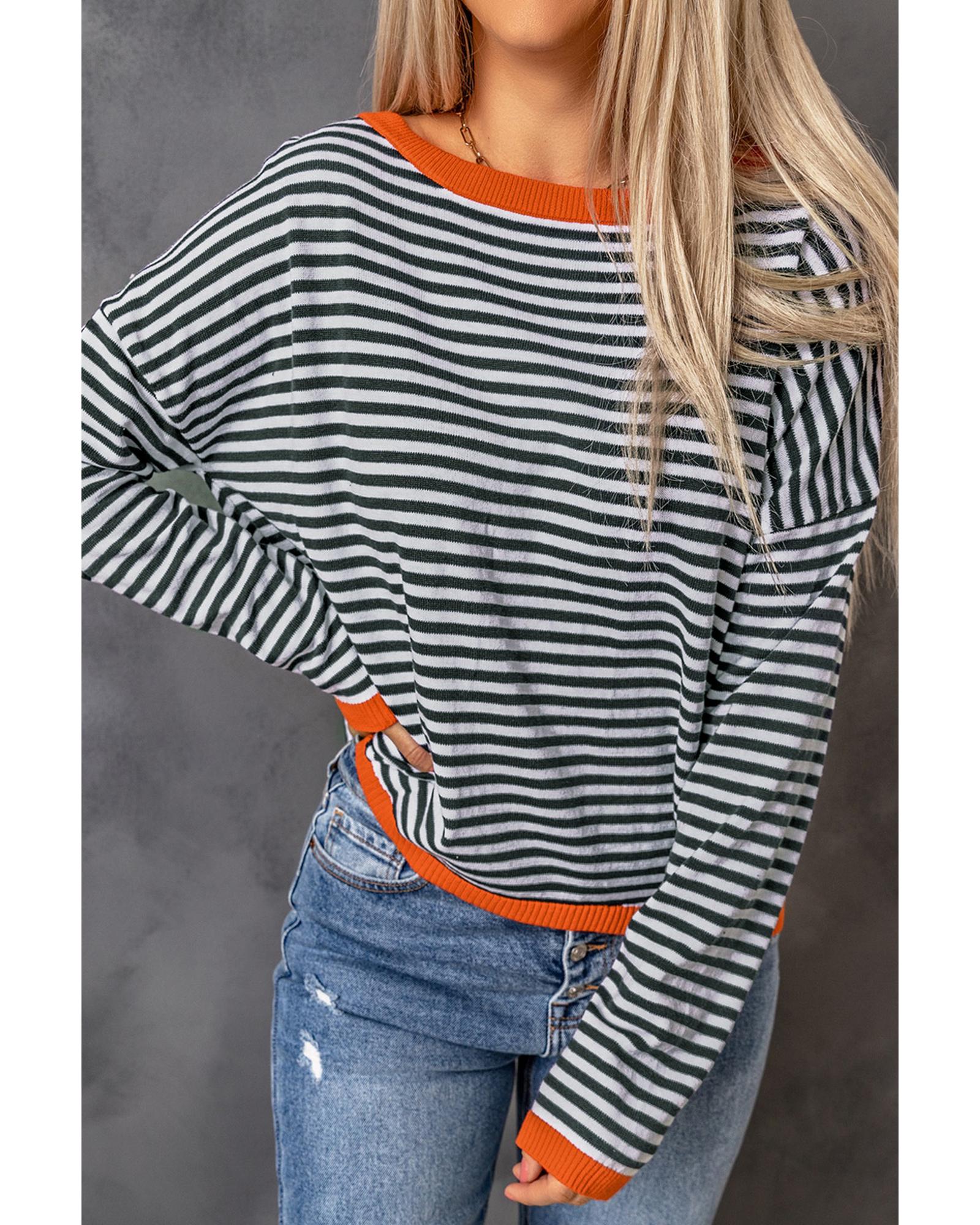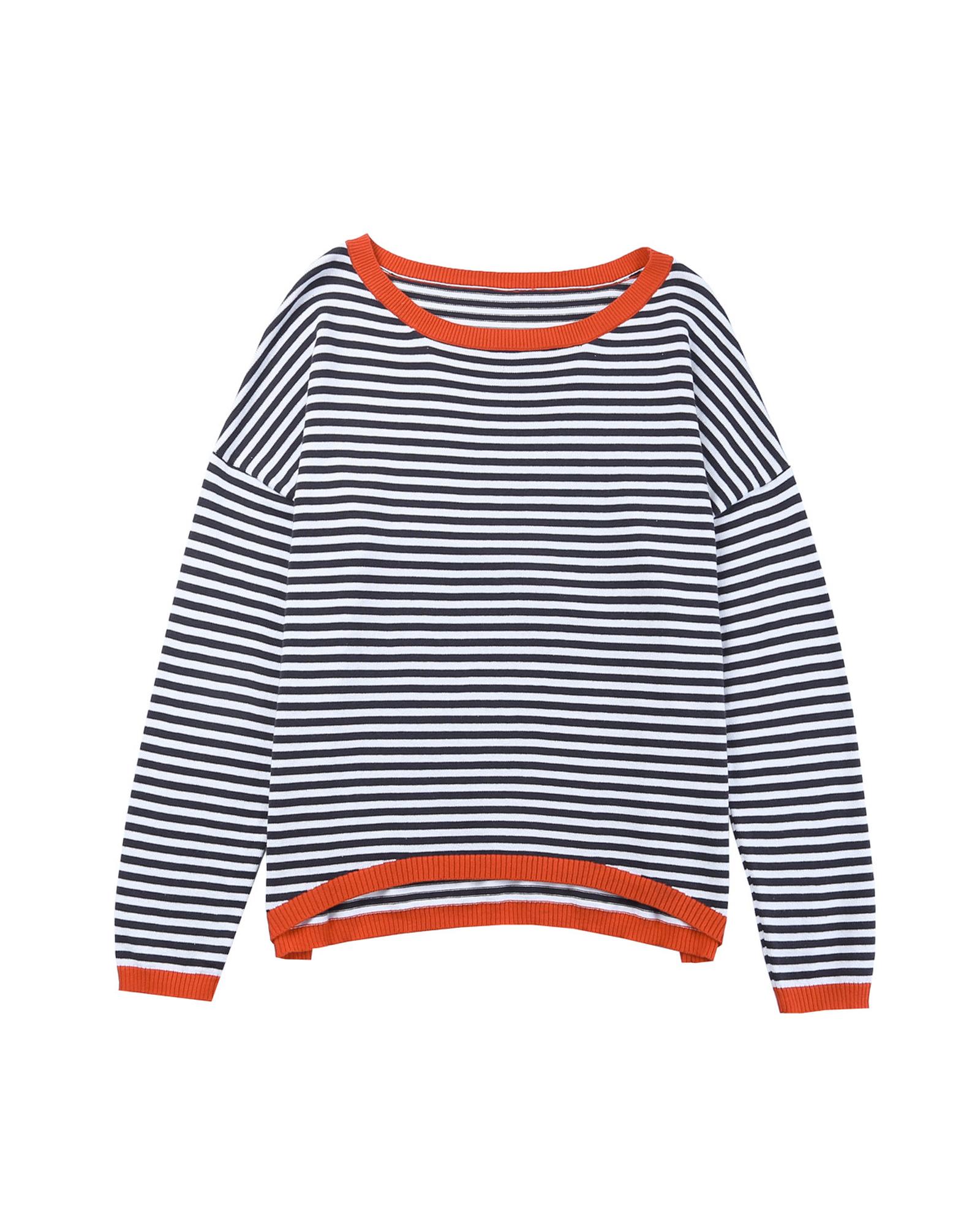 Contrast Trimmed Striped Drop Shoulder Sweater – XL