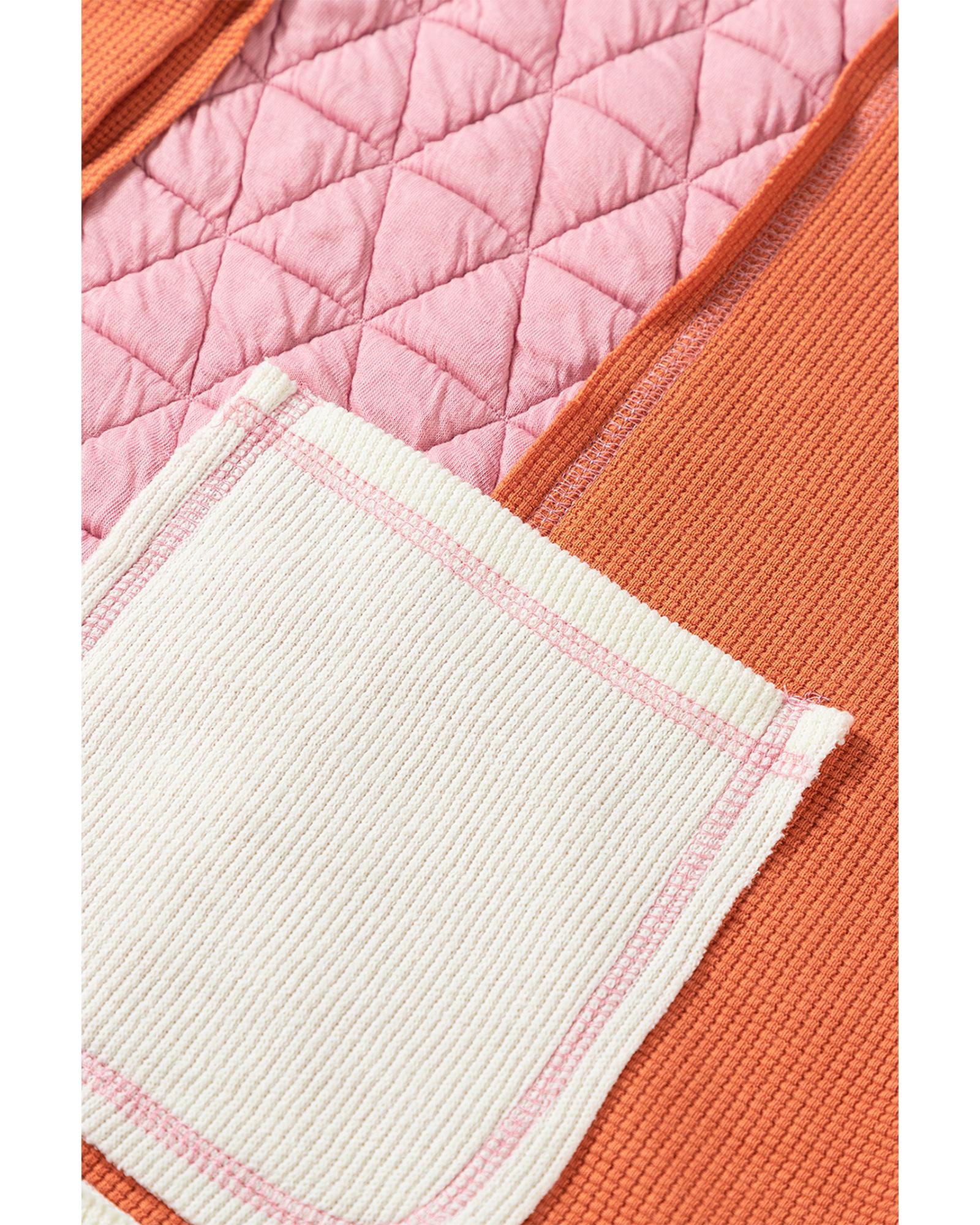Coral Quilted Textured Patchwork Loose Fit Hooded Jacket – M