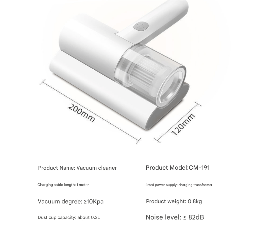 - Product Type: Handheld cordless dust mite vacuum