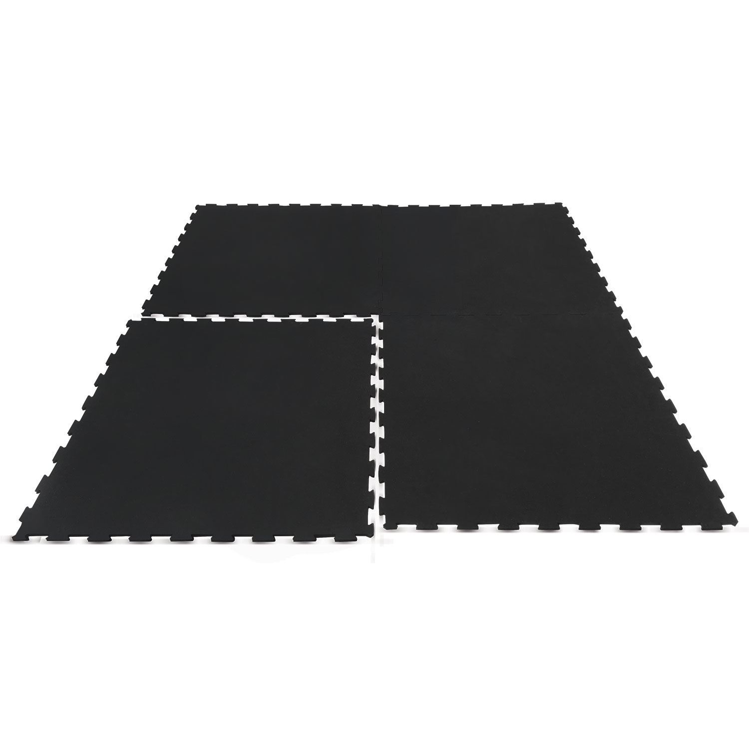 Each mat measures approximately 98cm by 98cm with a thickness of 10mm. The mats are made from high-density, heavy-duty rubber and are fire tested for safety. The interlocking design allows for easy assembly and secure connection of multiple mats, creating a larger, seamless workout surface.