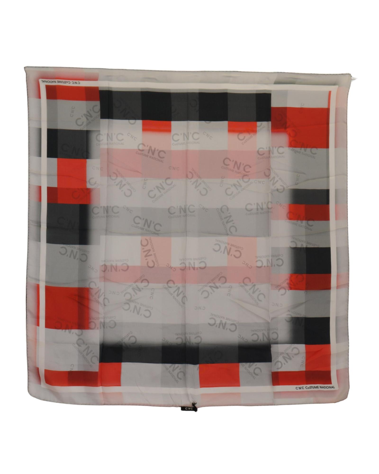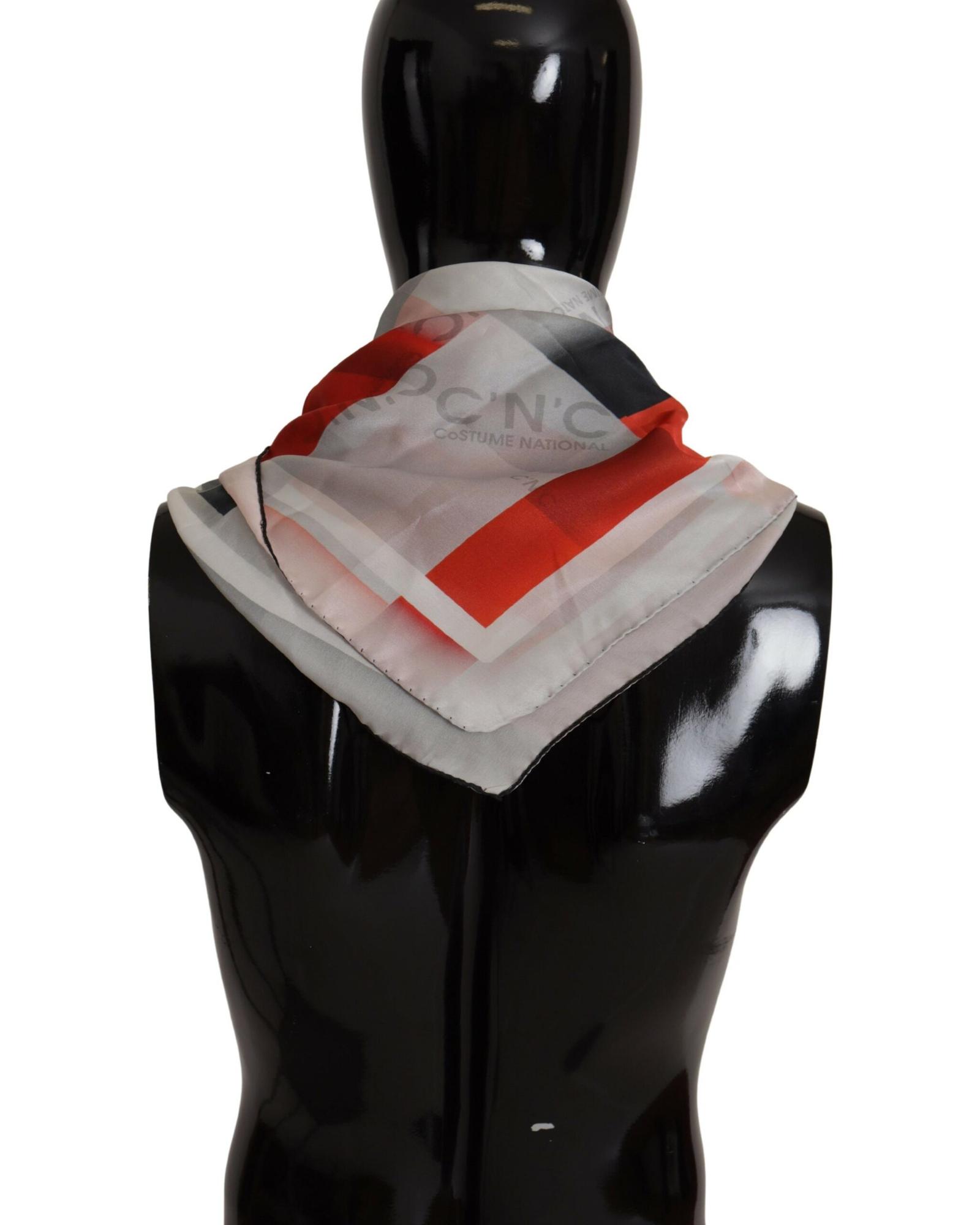 Costume National Women’s Gray Red Silk Shawl Foulard Wrap Scarf – One Size