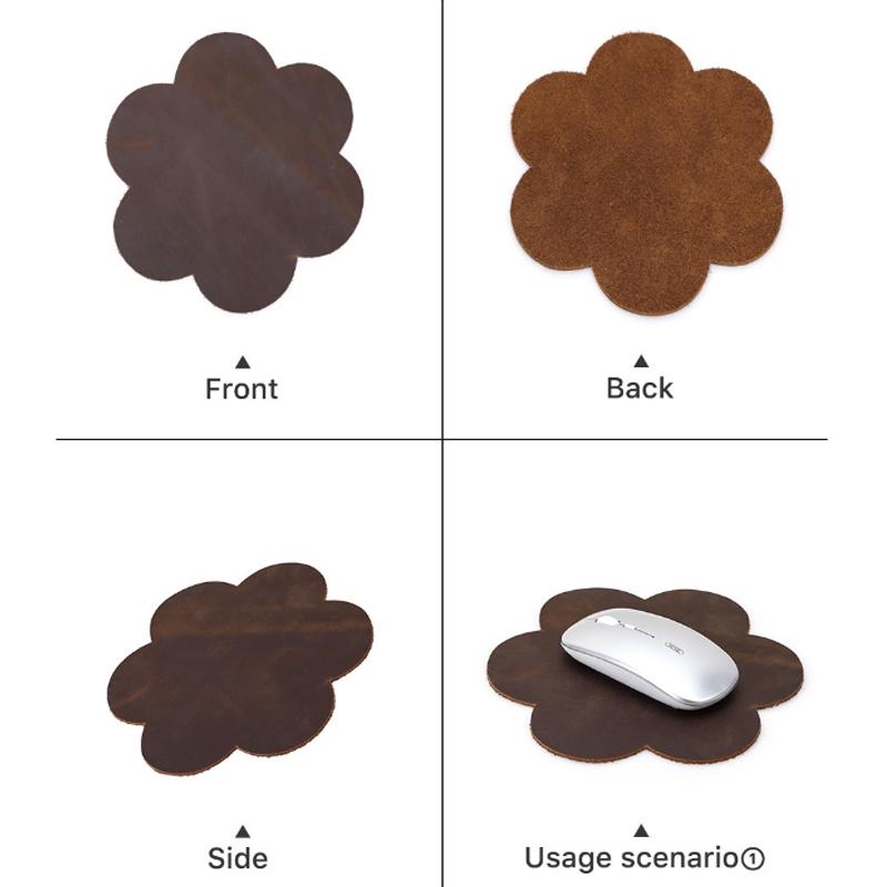 Crazy Horse Leather Retro Petal Mouse Pad Coffee