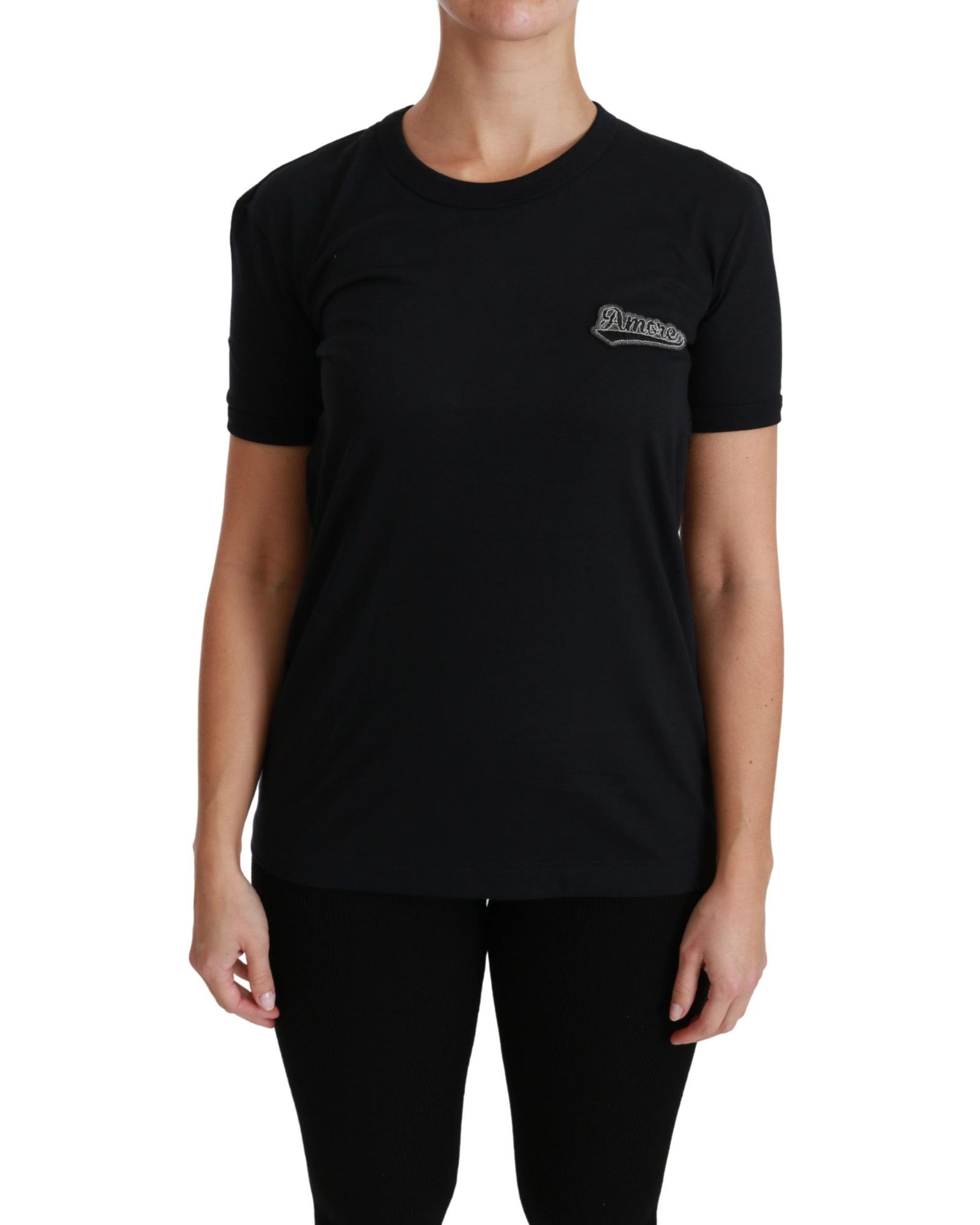 Crewneck Short Sleeve T-shirt with Blue Amore Patch 42 IT Women