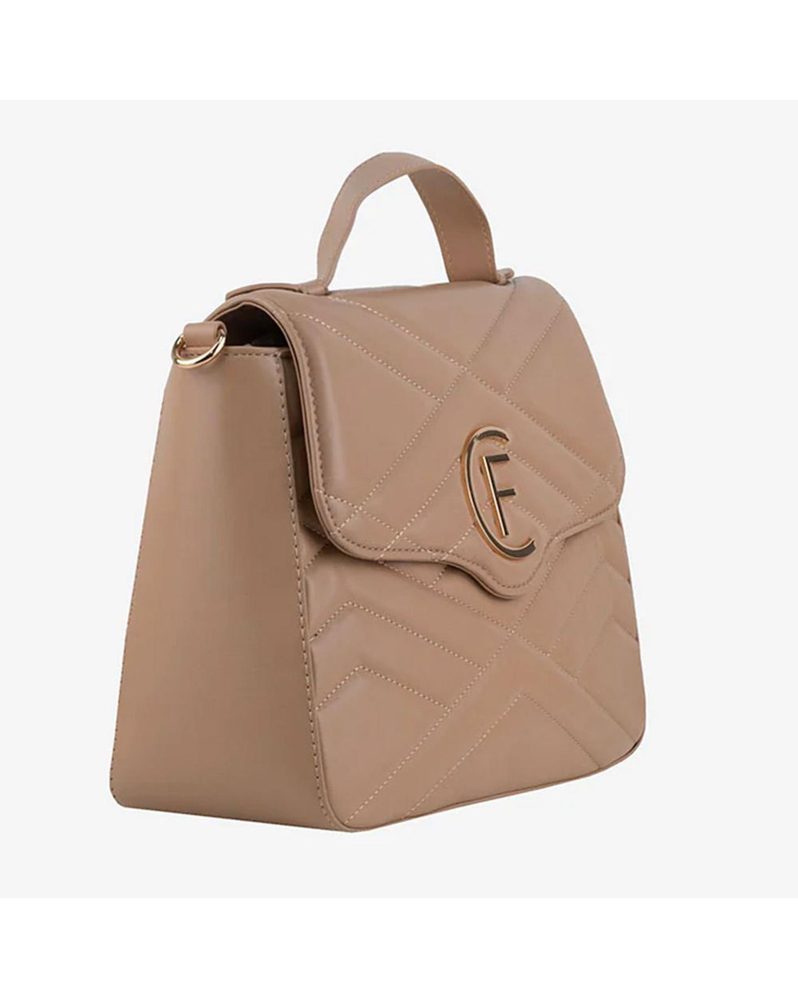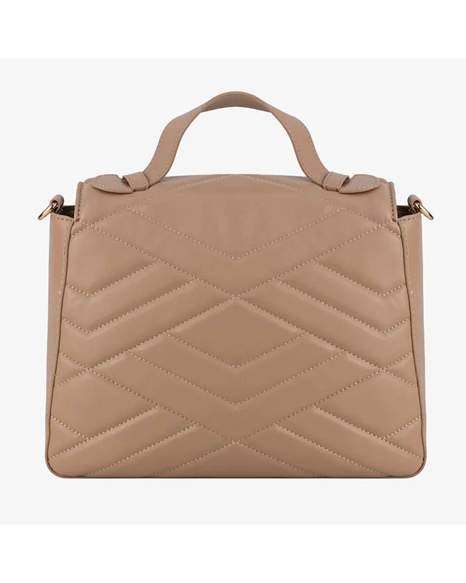 This women’s beige artificial leather crossbody bag combines style and practicality. Crafted from quilted faux leather, it offers a chic look suitable for various occasions. The bag features a convenient size and a front logo detail, making it a versatile accessory for everyday use.