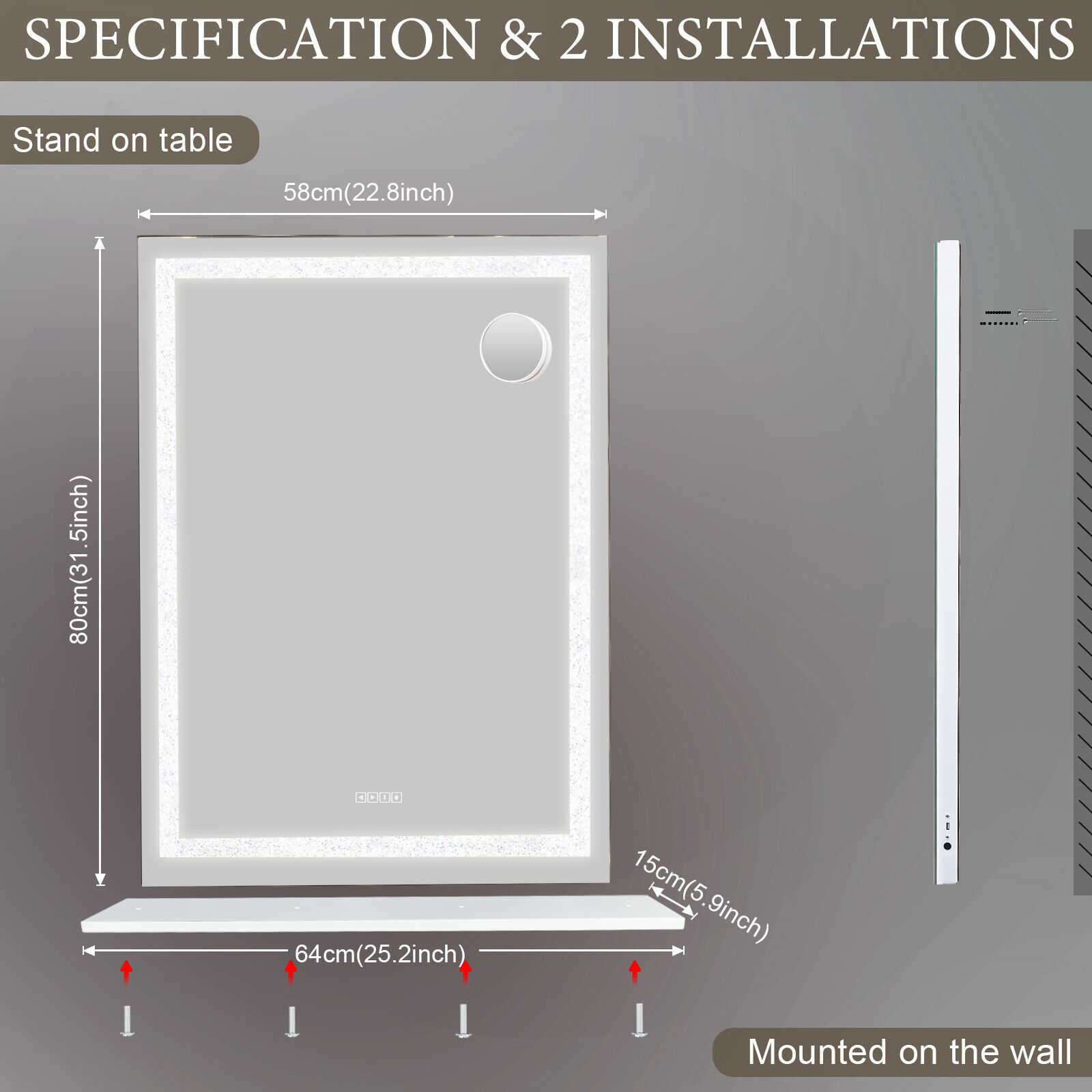 Crystal Vanity Mirror 80CM LED Bluetooth Magnifying