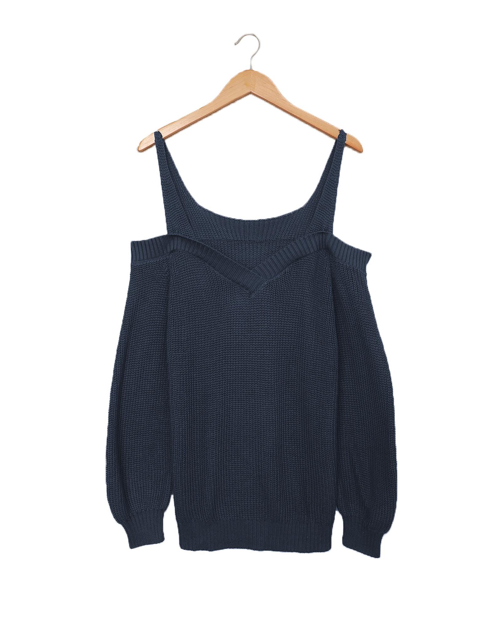 Dark Blue Dew Shoulder Juliette Knitted Sweater – L