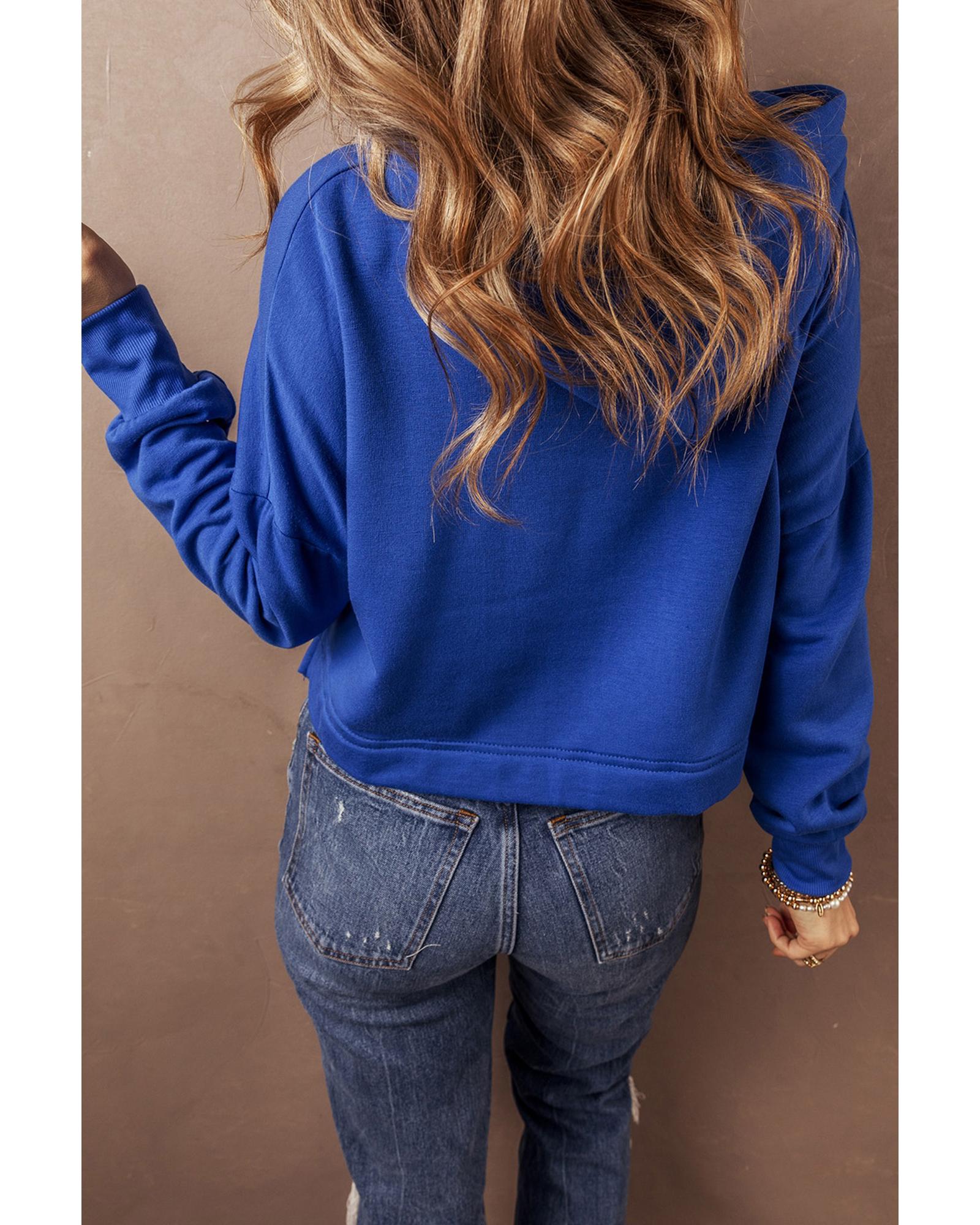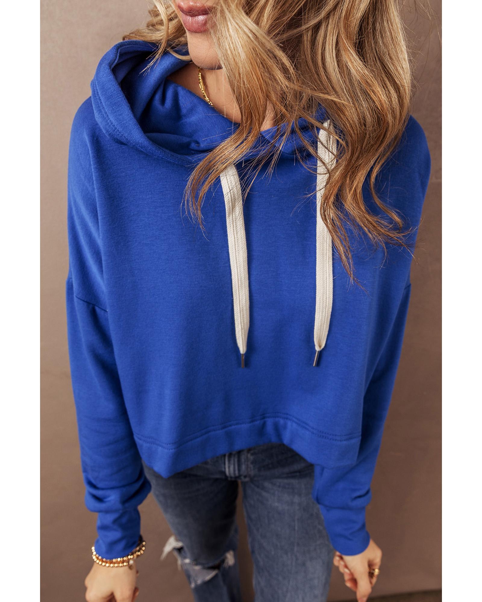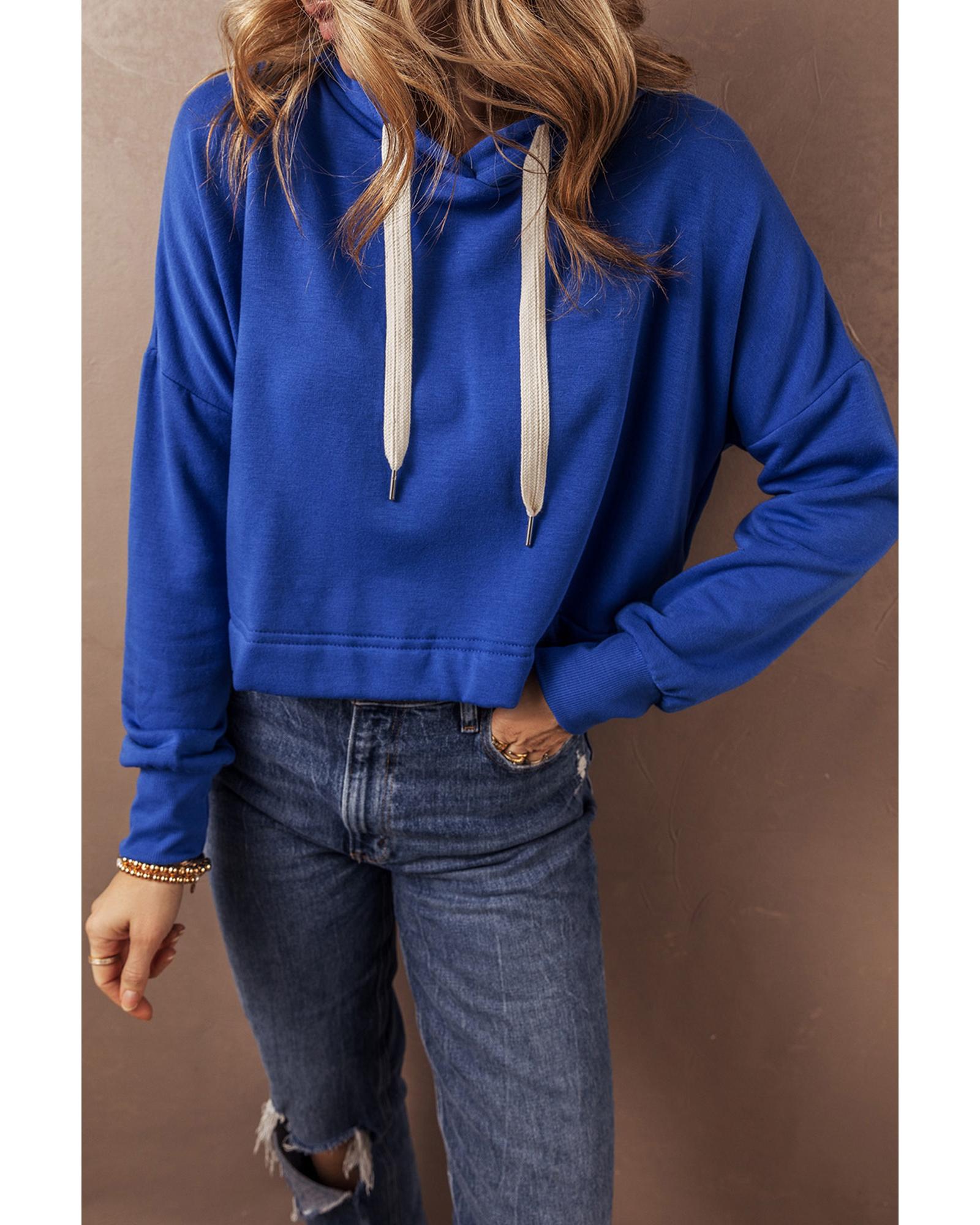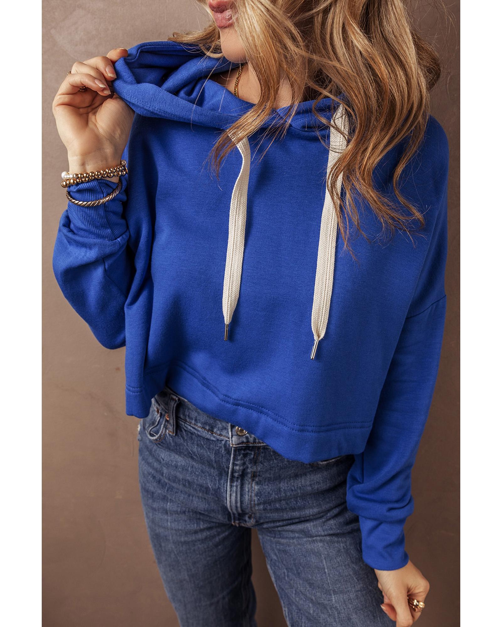 Dark Blue Solid Drop Shoulder Drawstring Cropped Hoodie – XL