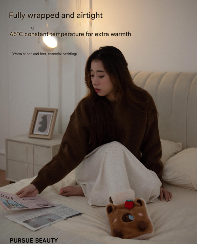 Stay warm and comfortable during cold nights with this adorable dark brown hot water bottle. It features a soft plush cover that adds a cozy touch and provides gentle insulation. The leak-proof PVC inner bottle ensures safe and reliable use, making it an ideal choice for soothing pain relief and winter comfort.