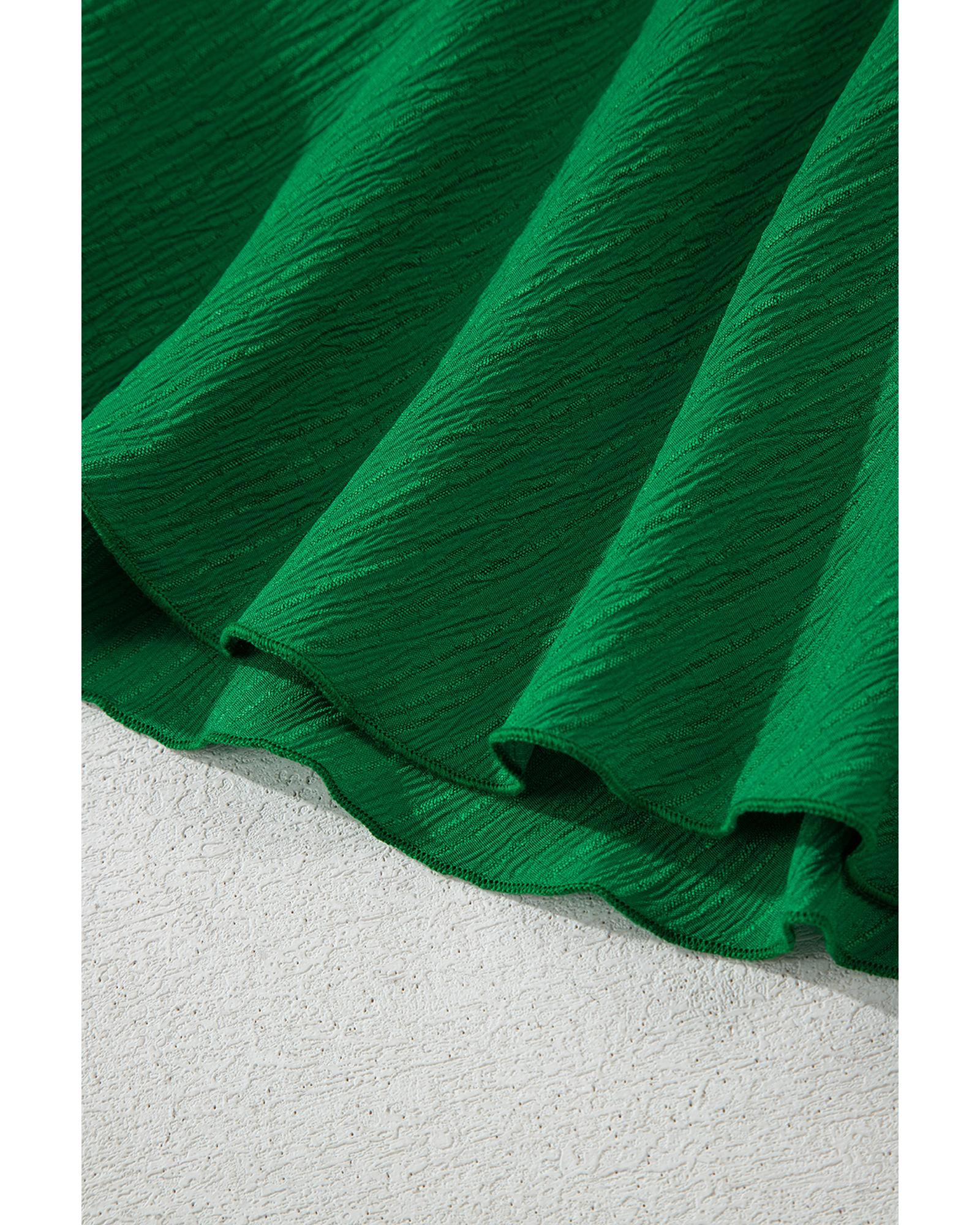 Dark Green Textured Frilled Lace-up High Waist Ruffle Wide Leg Shorts – XL