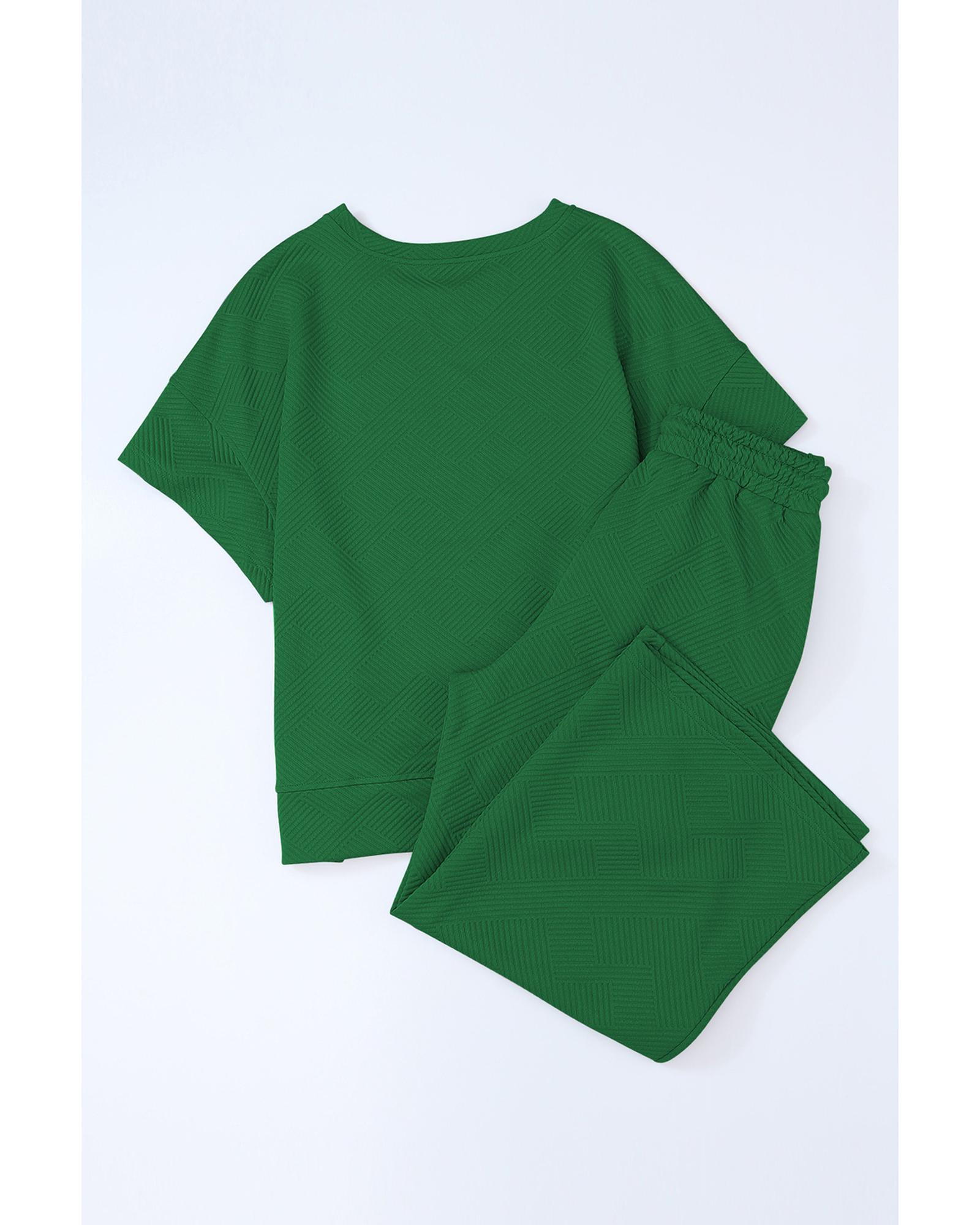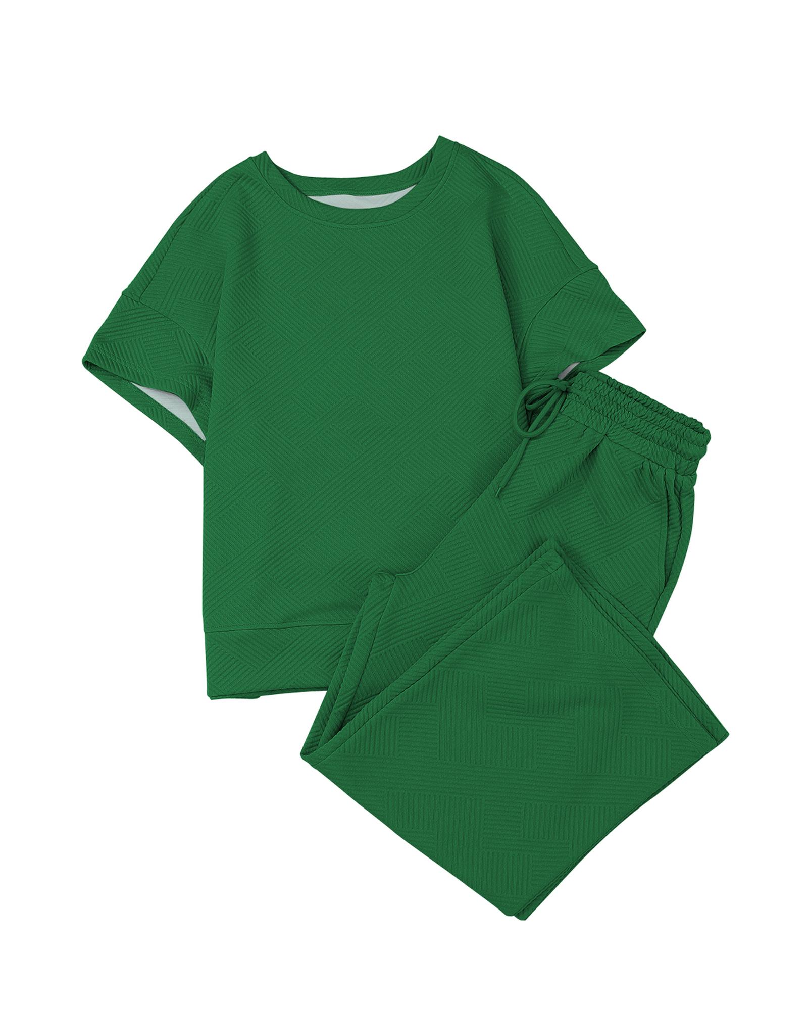 Dark Green Textured Loose Fit T Shirt and Drawstring Pants Set – XL