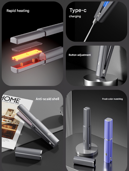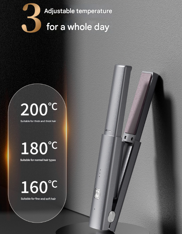 This portable cordless hair straightener offers a convenient solution for achieving sleek and styled hair anywhere. Its compact design and rechargeable battery make it ideal for travel and quick touch-ups, combining versatility with ease of use.