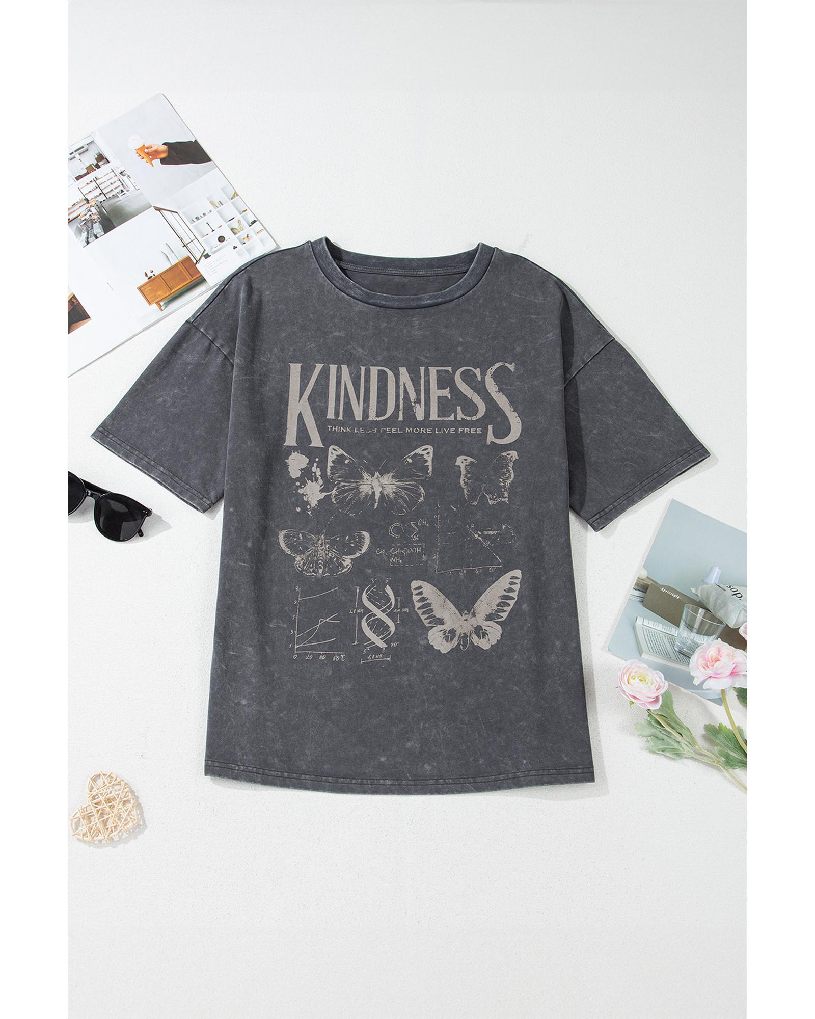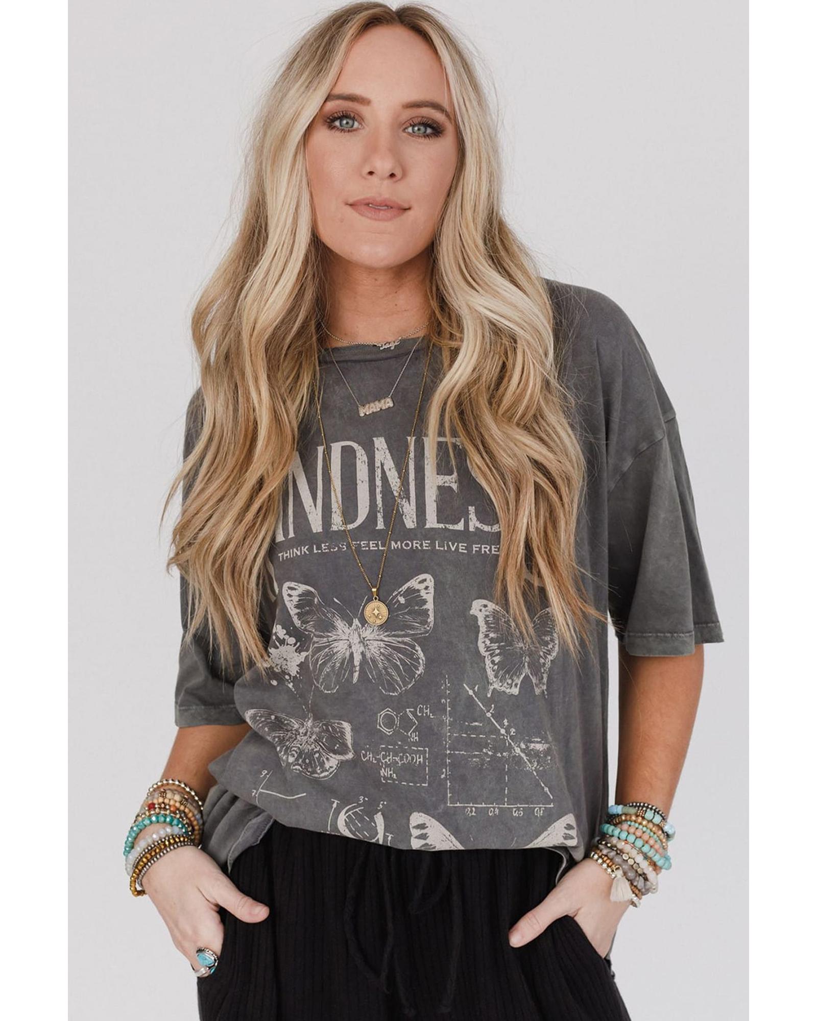 Dark Grey Kindness Butterflies Graphic Mineral Wash Loose Tee – M