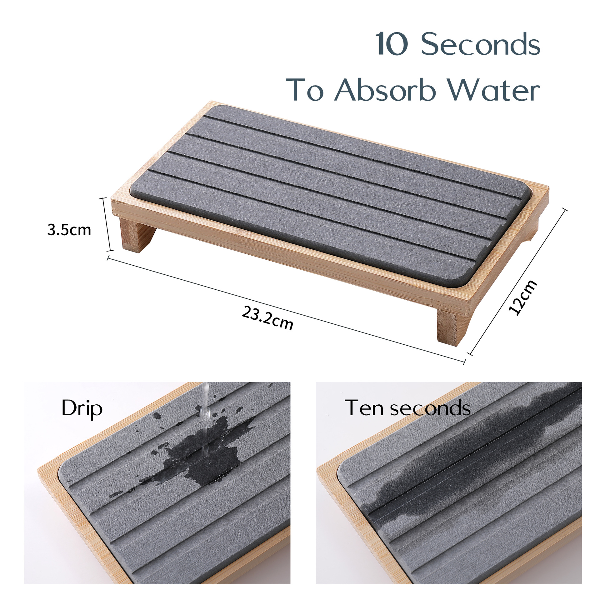 This diatomaceous earth drying tray with a bamboo base offers a stylish and functional solution for keeping your kitchen or bathroom surfaces dry and organized. Made from natural, eco-friendly materials, it combines rapid water absorption with a minimalist design, making it suitable for various household uses.