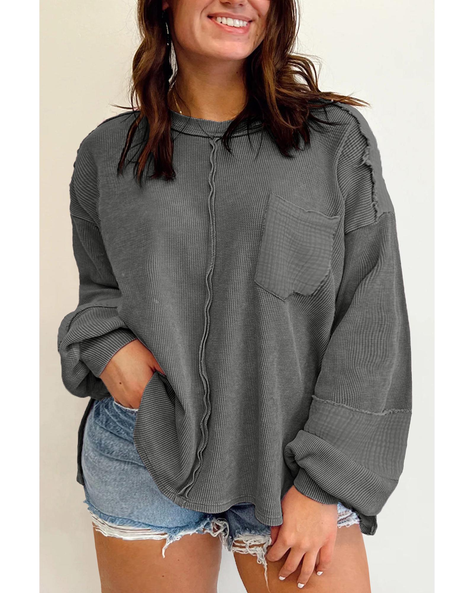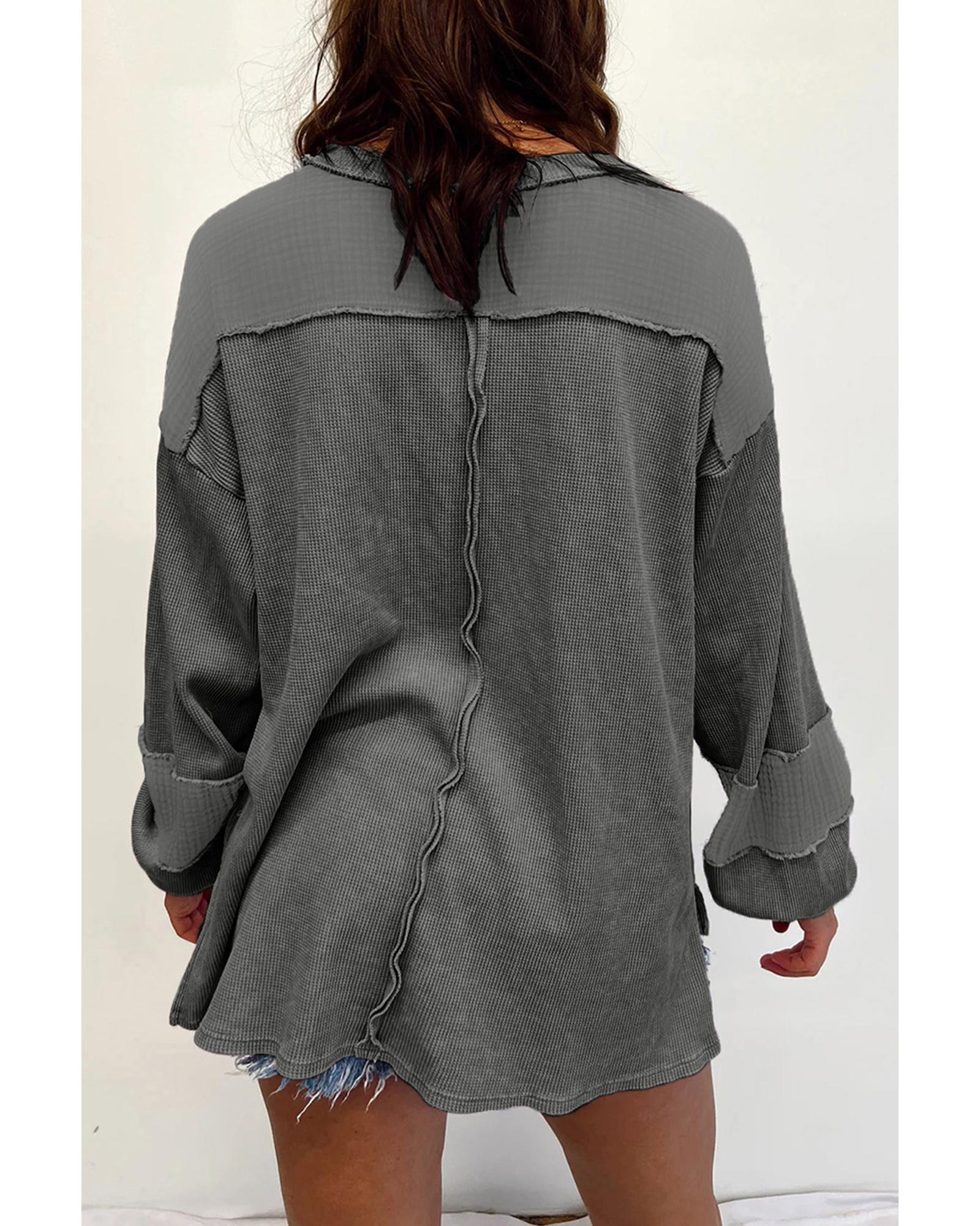 Dark Grey Plus Size Exposed Seam Crinkle Patchwork Top – 1X