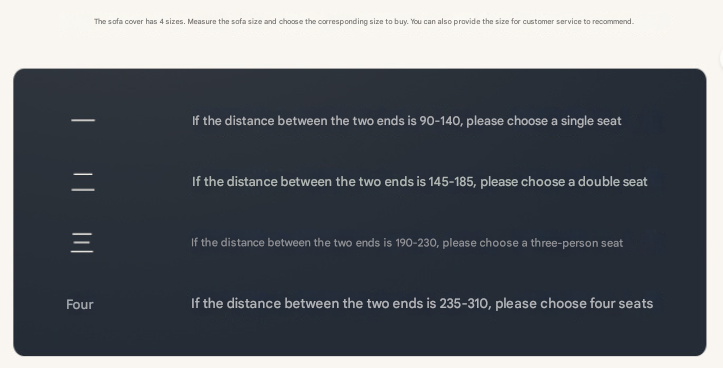 - Size Range: Fits sofa back lengths from 190 to 230 cm