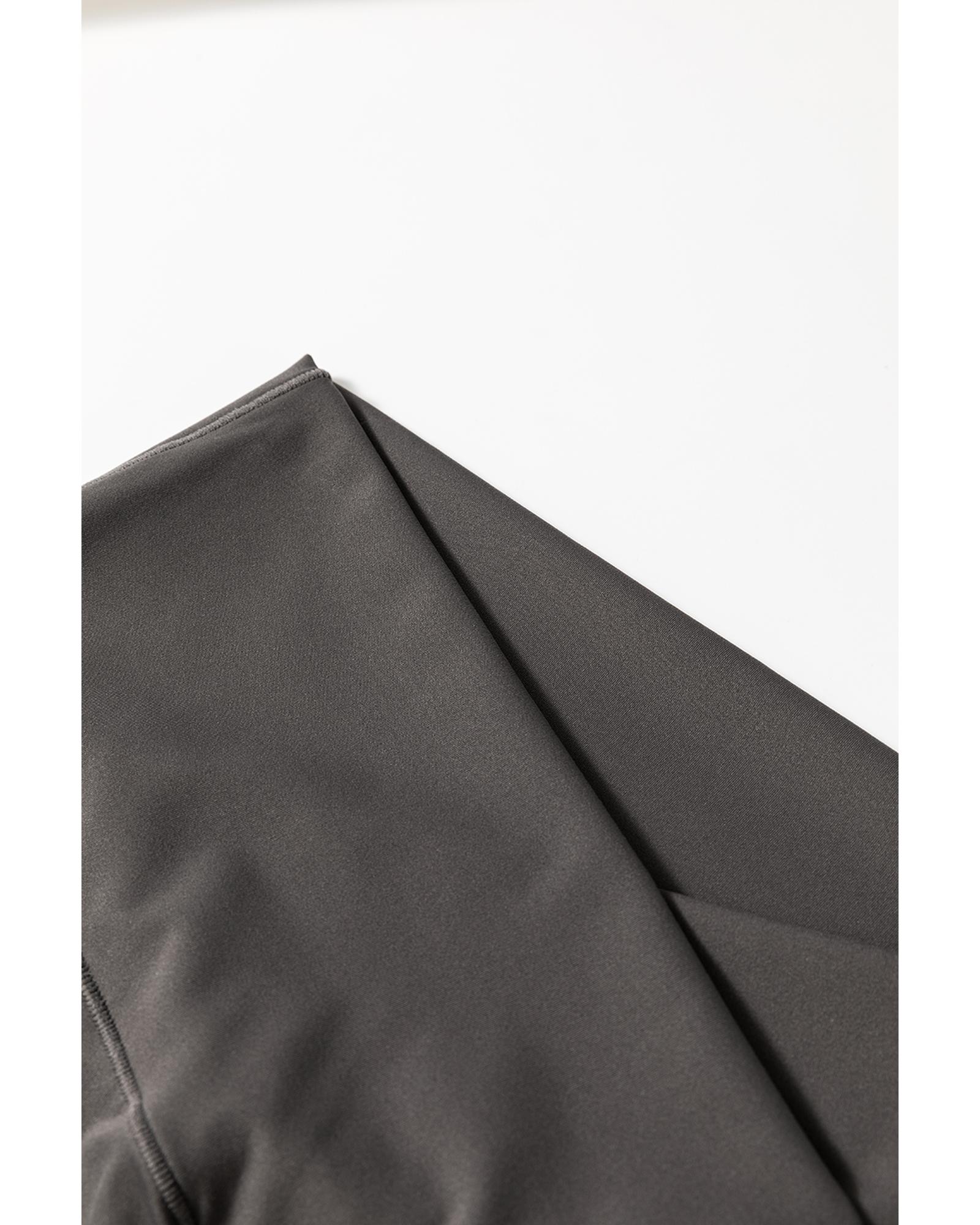 This pair of dark grey high waist flared leggings features a stylish V shape design that offers a flattering fit. The high waist and flared legs create a trendy silhouette, making them versatile for pairing with various tops such as tunics, blouses, or casual shirts. Designed for comfort and style, these leggings are suitable for everyday wear.