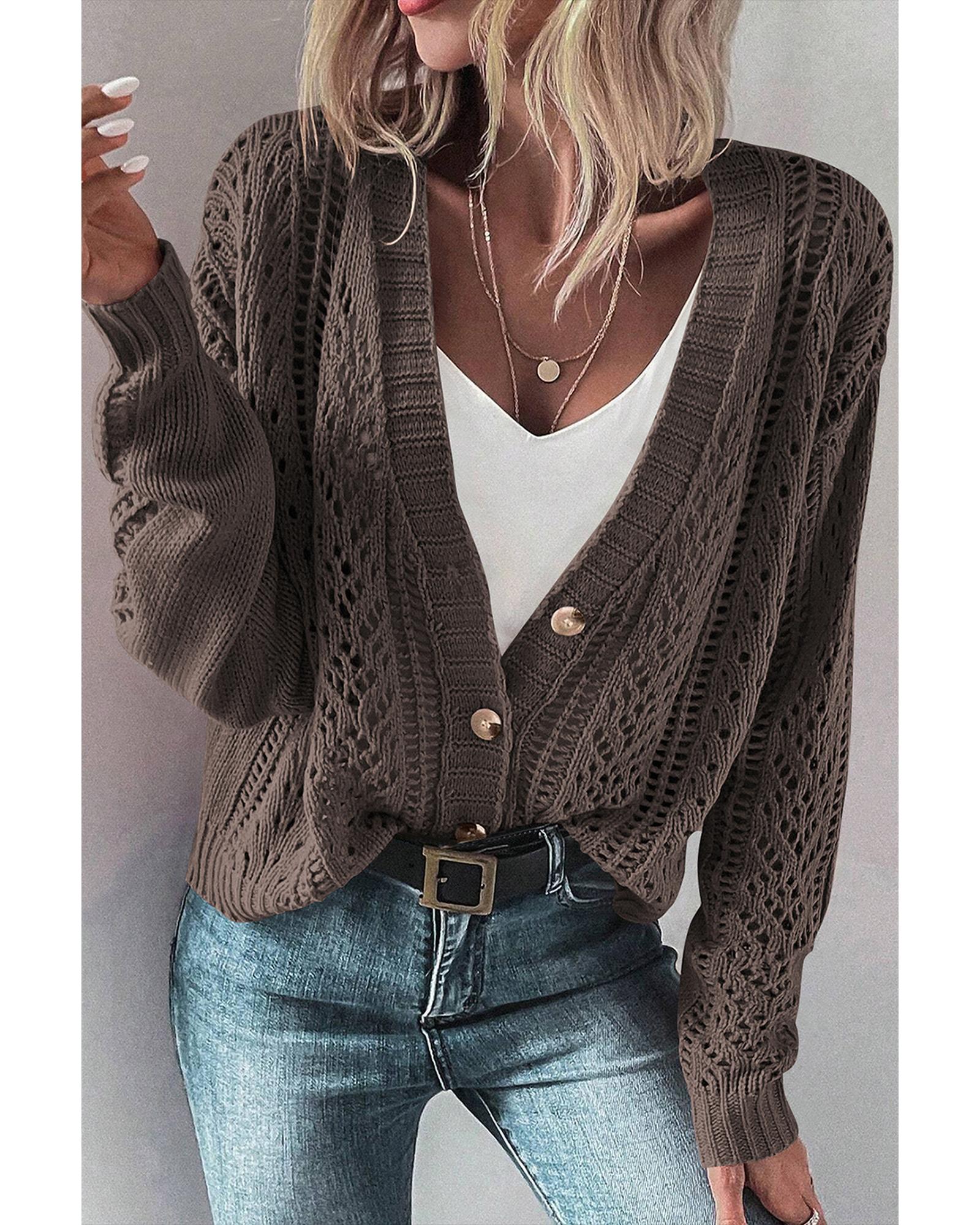Dark Khaki Open Knit Drop Shoulder Sweater Cardigan – M