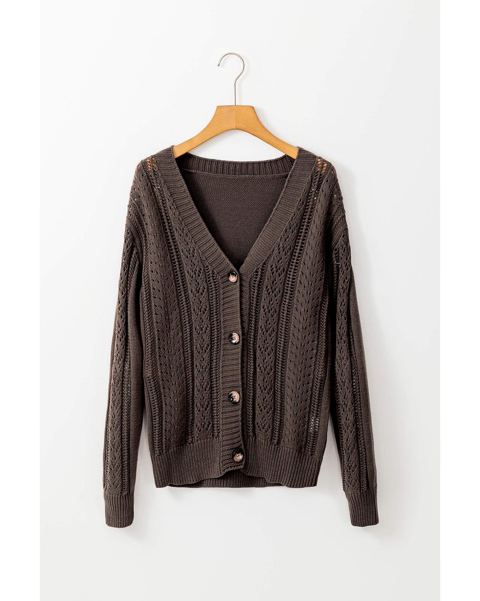 This open knit sweater cardigan features a relaxed, slouchy silhouette with drop shoulders, offering a versatile and stylish layer suitable for various occasions. Crafted from a soft and cozy fabric blend, it provides comfort and warmth for everyday wear.