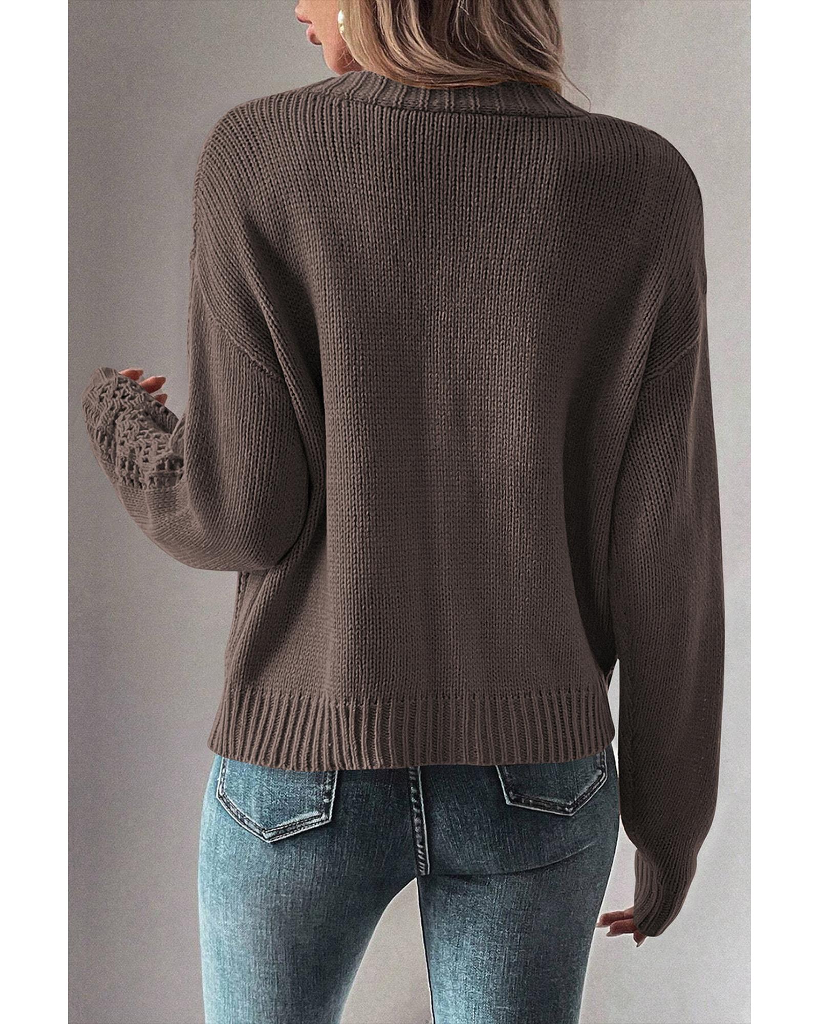 This open knit sweater cardigan features a trendy, relaxed fit with a chic slouchy drop shoulder silhouette. Its versatile design includes buttons for easy layering, making it suitable for various occasions and daily wear. Crafted from a soft and cozy fabric blend, it offers comfort and style for all-day use.