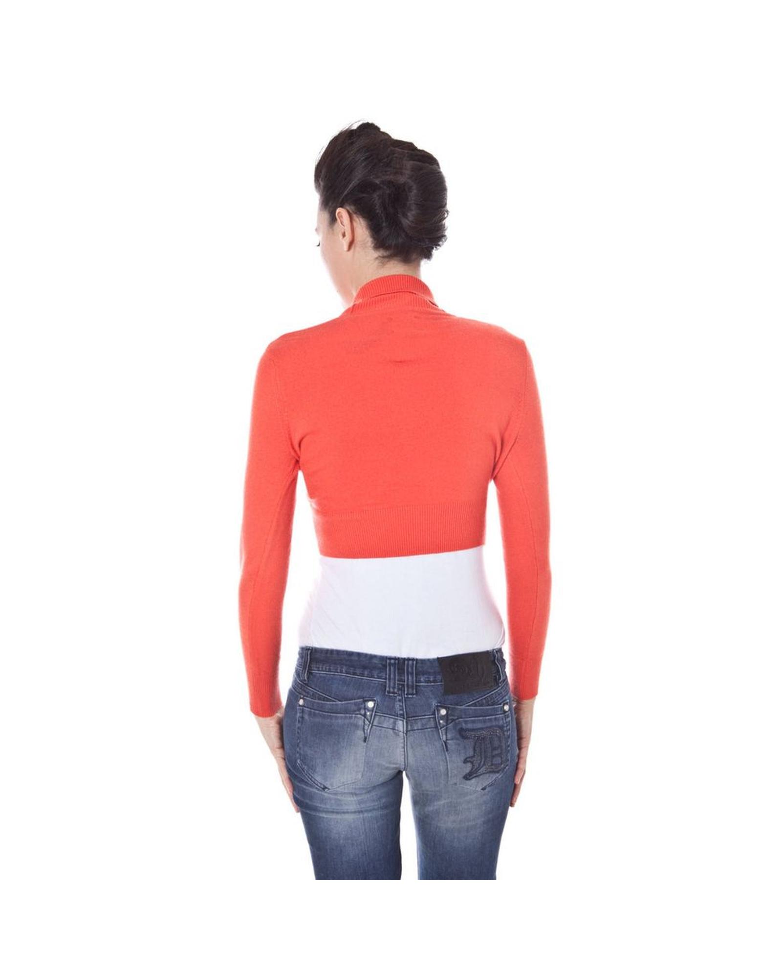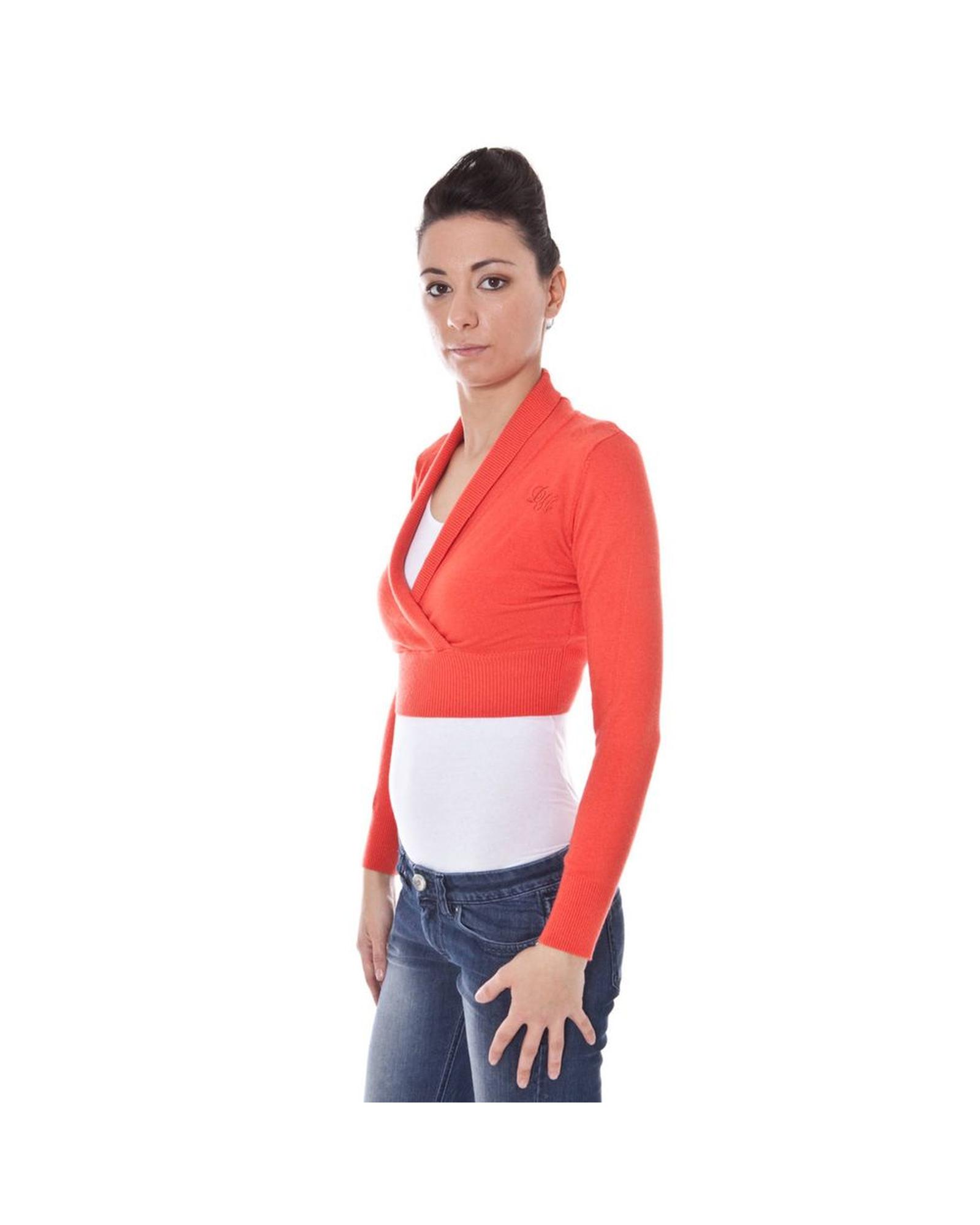 This women’s red wool sweater features a stylish V-neck design with long sleeves, making it a versatile addition to your wardrobe. Crafted from a blend of wool, elastane, viscose, and polyamide, it offers comfort and warmth for various occasions.