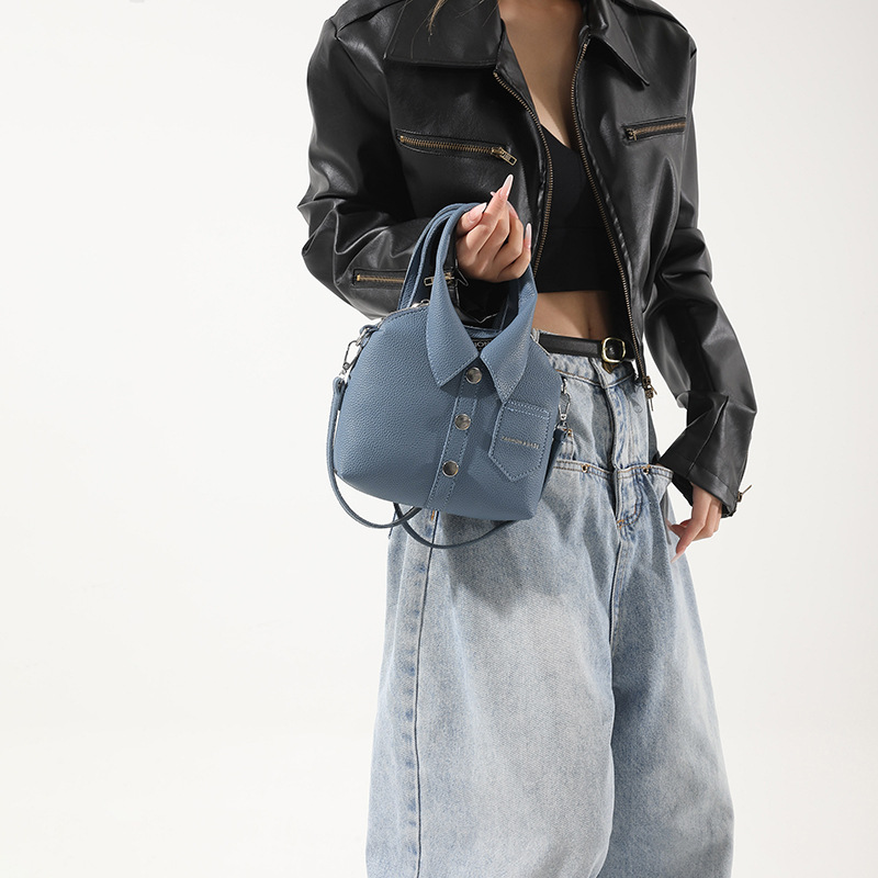 Denim Blue Trendy Shirt-Inspired PU Shoulder Bag | Stylish Handbag with Unique Design