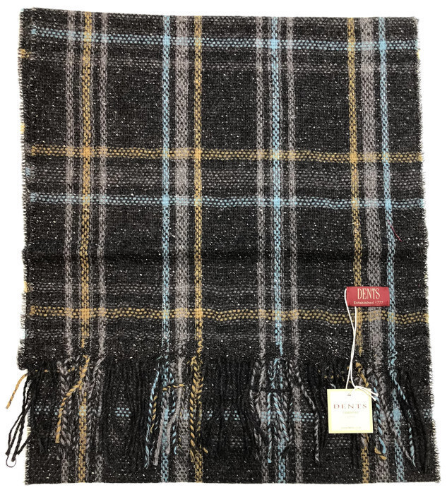 DENTS Woven Checked Scarf w Fringed Edges Wool Blend MADE IN ITALY – Charcoal