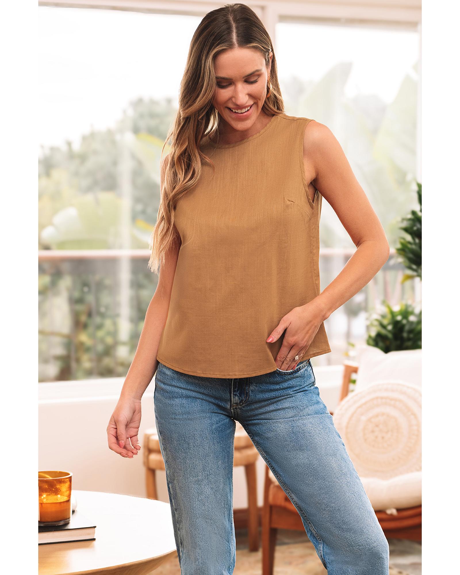 Desert Gold Bowknot V Cut Backless Cotton Tank Top – L