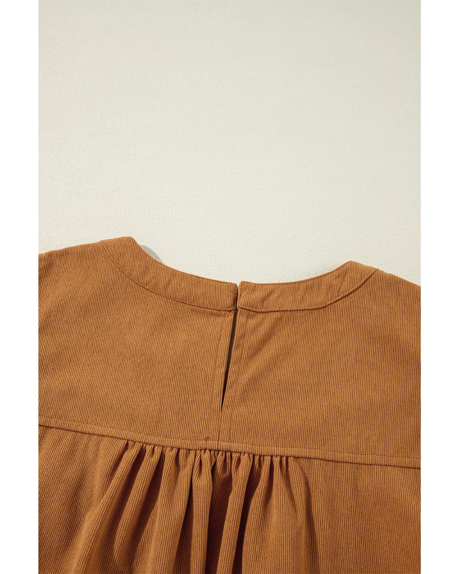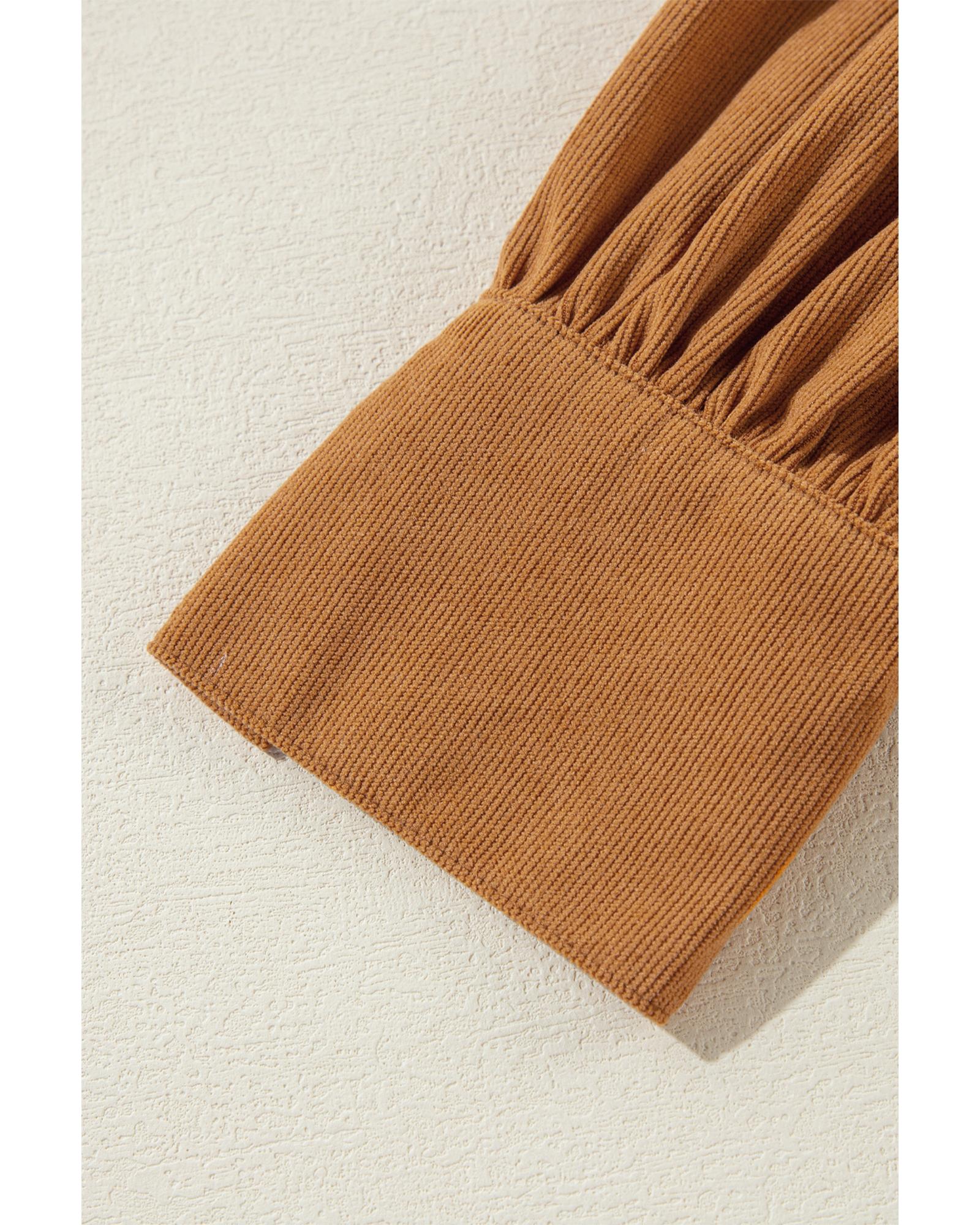 Desert Gold Corduroy Pleated Puff Sleeve Shift Short Dress – S