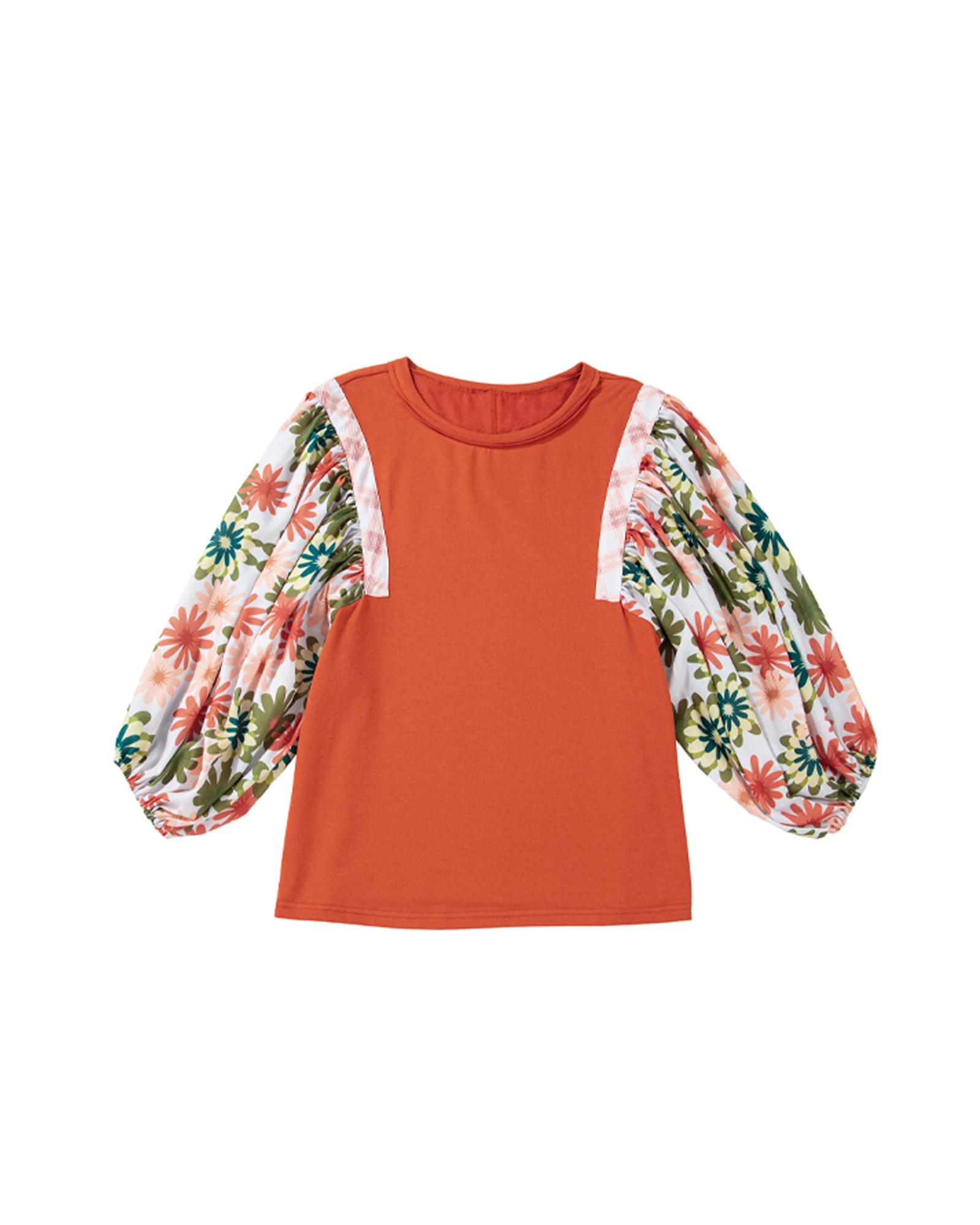 This floral puff sleeve blouse features a patchwork design and a versatile round neckline, combining style and comfort for everyday wear. Its trendy fitted silhouette is complemented by intricate floral details and statement puff sleeves, making it suitable for various occasions.