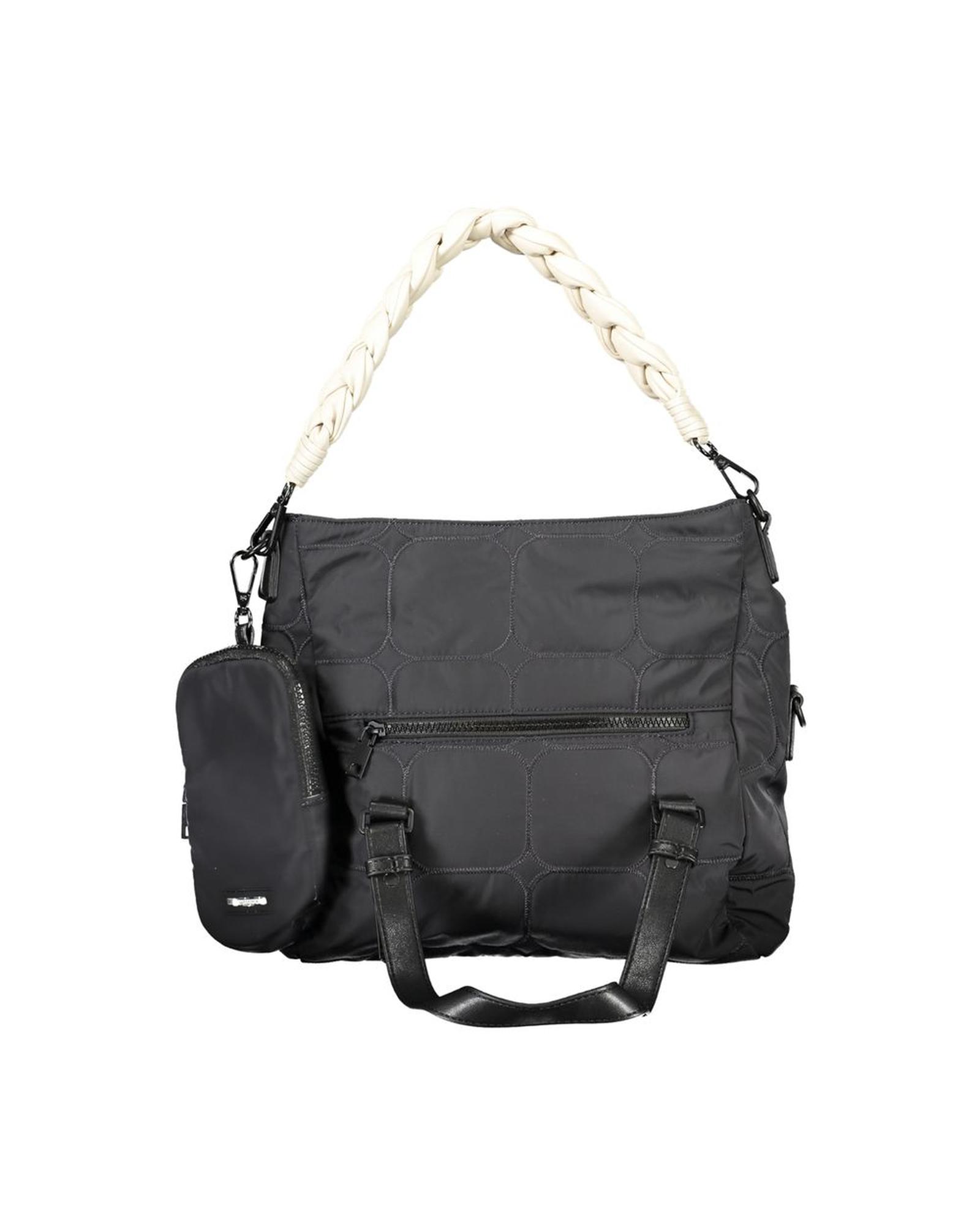 This women’s handbag combines style and functionality with a sleek black design. Crafted from durable polyester, it offers ample space and versatile carrying options for everyday use.