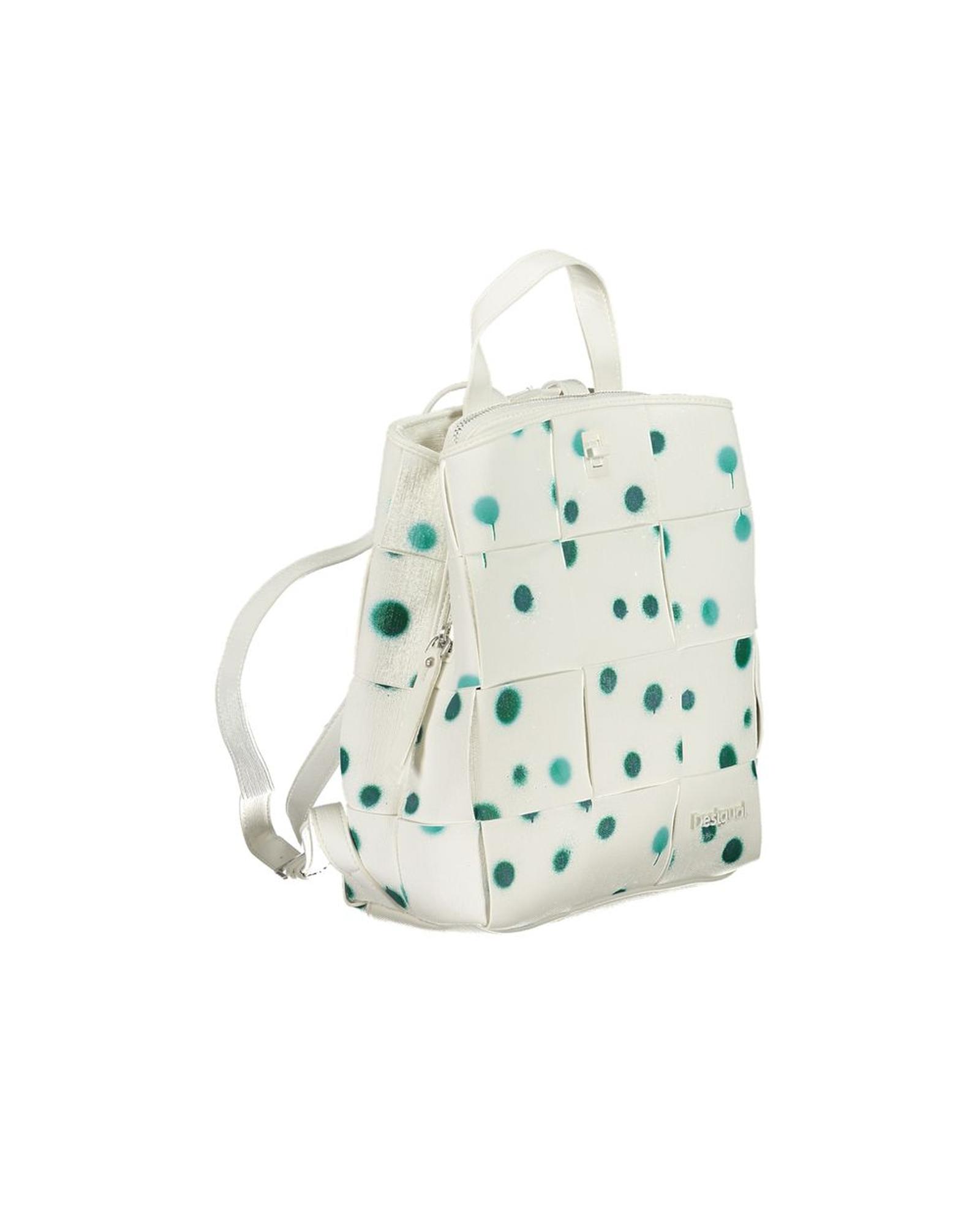 This stylish women’s backpack is made from durable polyethylene material, offering a practical and fashionable accessory for daily use. Its polka dot design with contrasting details adds a playful touch, making it suitable for various outfits and occasions.