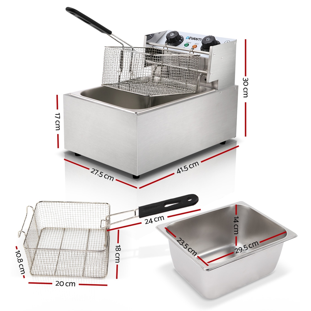 Devanti 10L Electric Commercial Deep Fryer Single Basket 2200W