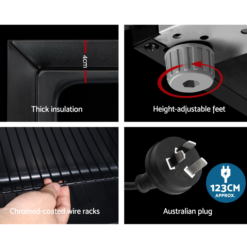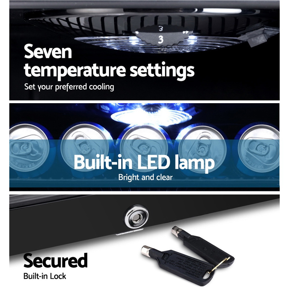 Devanti 115L Bar Fridge Glass Door w/Light Black