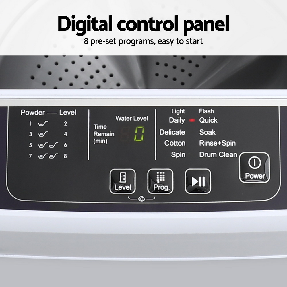 This washing machine offers a practical solution for household laundry needs with a 6kg capacity and multiple program options. It features a durable stainless steel tub, digital controls, and safety features to ensure efficient and safe operation. Designed for ease of use, it includes quick wash cycles and easy maintenance components.