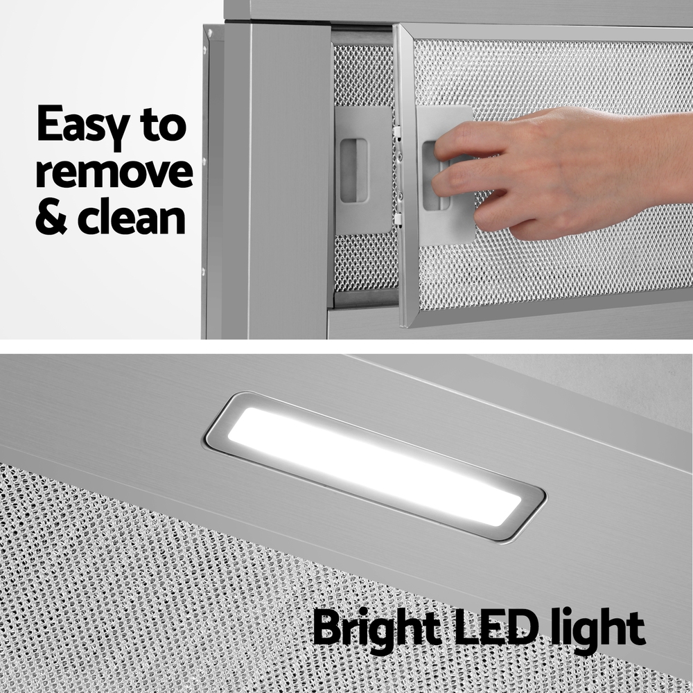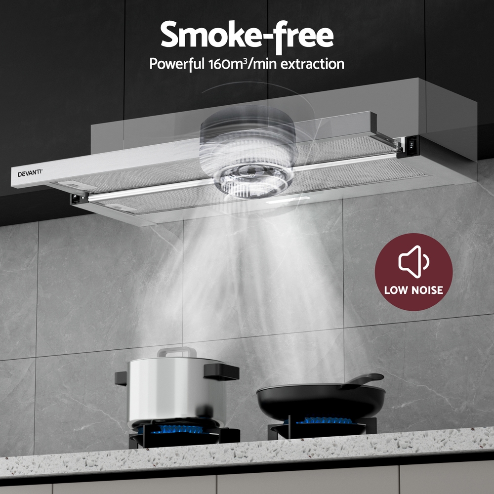 Devanti 900mm Range Hood 90cm Slide out Rangehood Stainless Steel