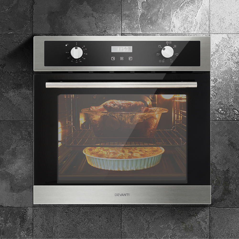 Devanti Electric Built In Wall Oven 80L Convection Grill Ovens Stainless Steel