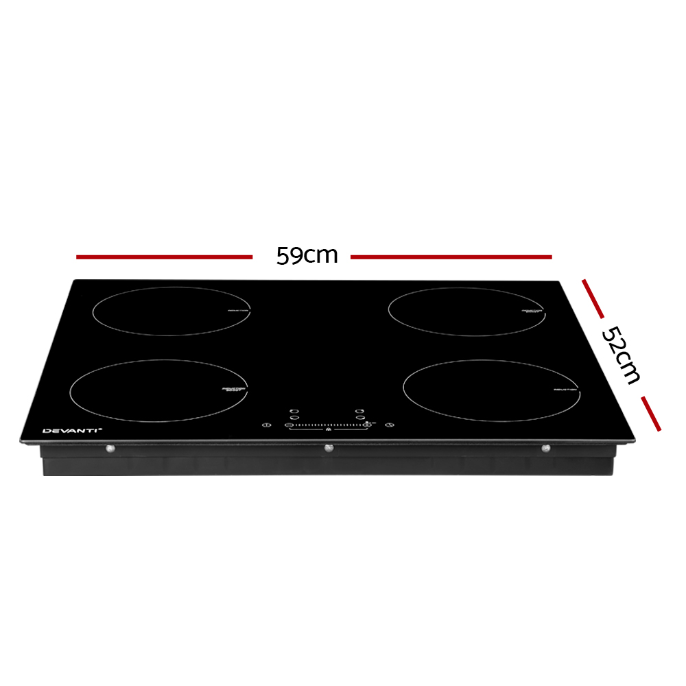 This induction cooktop offers a sleek and modern design with a high-grade black ceramic glass surface. It features four independent cooking zones, multiple power levels, and advanced safety features to ensure efficient and safe cooking experiences. The touch control panel and LED display provide easy operation, while various timers and safety functions add convenience and security.