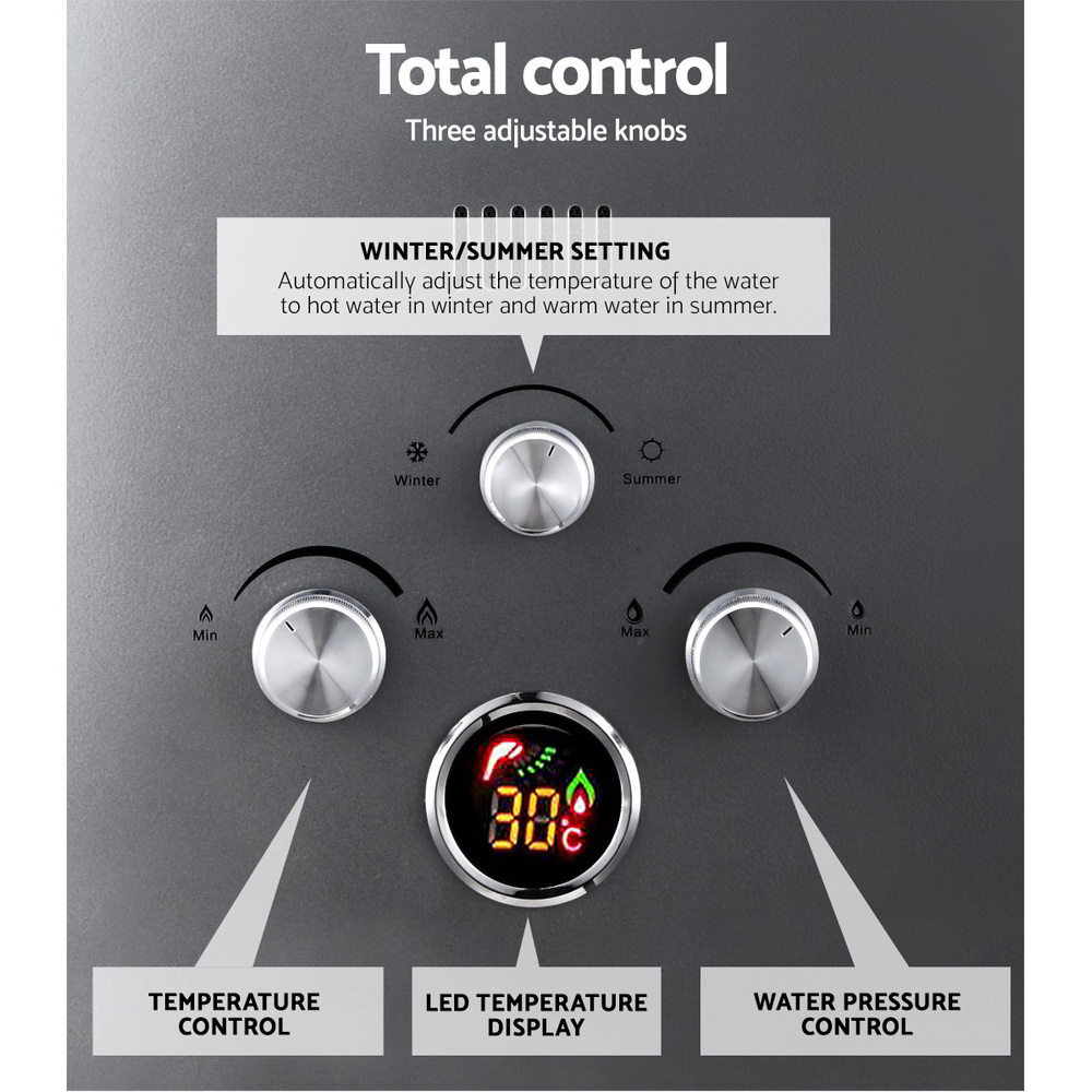 Devanti Portable Gas Water Heater 8L/Min With Pump LPG System Grey