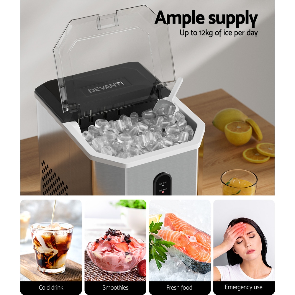 Devanti Portable Ice Maker Machine Ice Cube 12kg Bar Countertop Stainless Steel