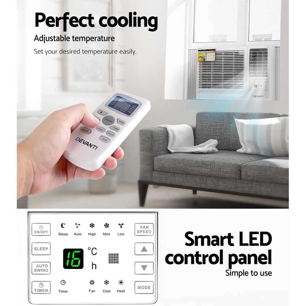 This window air conditioner offers a cooling capacity of 2.7kW, providing effective and efficient cooling for rooms up to 18 square meters. It features an easy-to-use LED control panel with multiple functions, including adjustable fan speeds, auto swing, a 24-hour timer, and sleep mode. The unit is designed for simple installation and operation, making it a practical choice for maintaining a comfortable indoor environment.